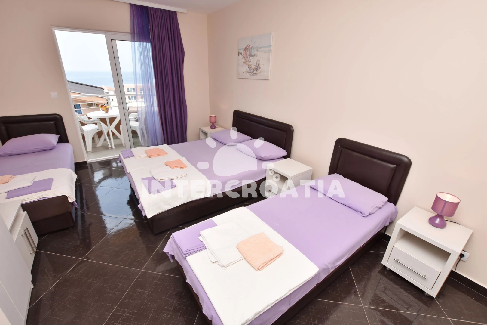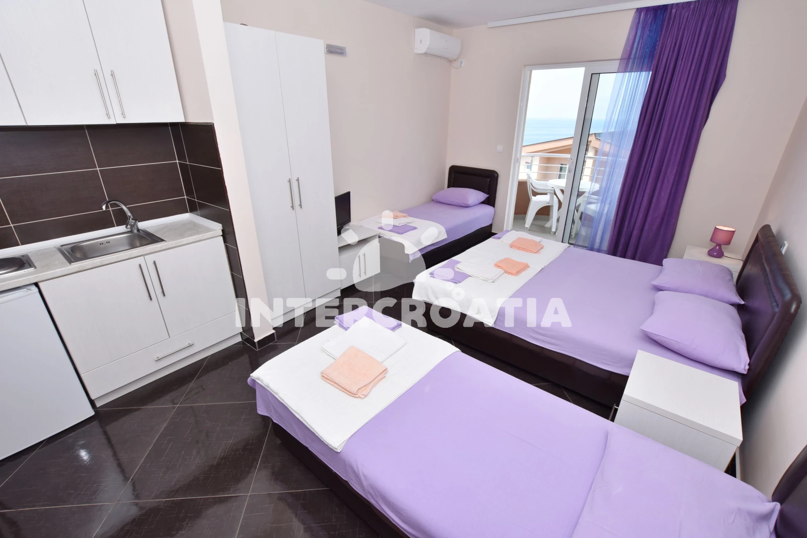 Apartmán typu studio (30 m2) s terasou. Nachází se ve 4. nebo vyšším patře objektu. Kuchyňská linka je vybavena varnou deskou, nádobím, lednicí. K dispozici dvoulůžko, televize se satelitním programem, žehlička. Koupelna se sprchovým koutem, umyvadlem, fénem a WC.