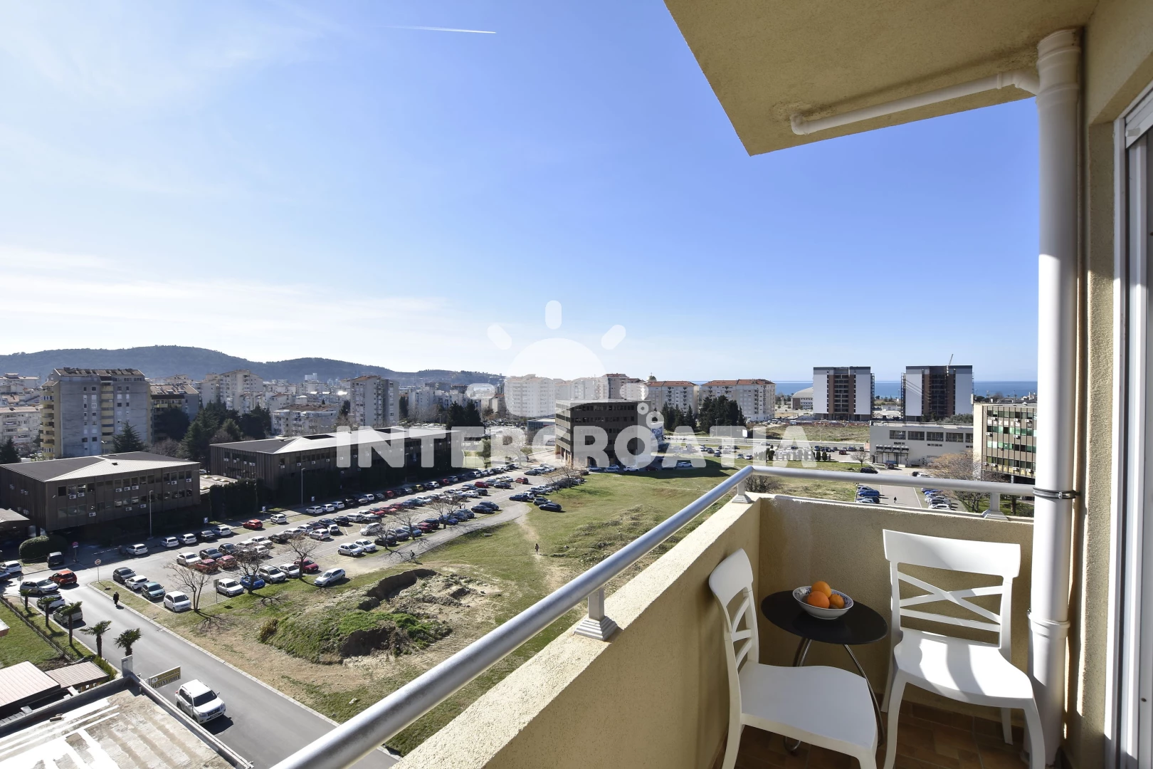Apartmán (73 m2) s balkonem, s terasou. Nachází se ve 4. nebo vyšším patře objektu. Apartmán má 2 ložnice a je vhodný pro až 5 osob. Kuchyňská linka je vybavena varnou deskou, troubou, toustovačem, nádobím, lednicí. K dispozici televize se satelitním programem, žehlička. První ložnice s jednolůžkem, dvoulůžkem. Druhá ložnice se 2 přistýlkami. Koupelna s vanou, umyvadlem, fénem a WC. Hostům je k dispozici parkování u objektu zdarma.