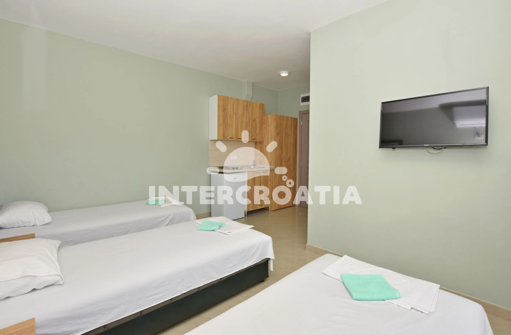 Apartmán typu studio (20 m2) s terasou. Nachází se ve 3. patře objektu. Kuchyňská linka je vybavena varnou deskou, nádobím, lednicí. K dispozici televize se satelitním programem. Koupelna se sprchovým koutem, umyvadlem, WC.