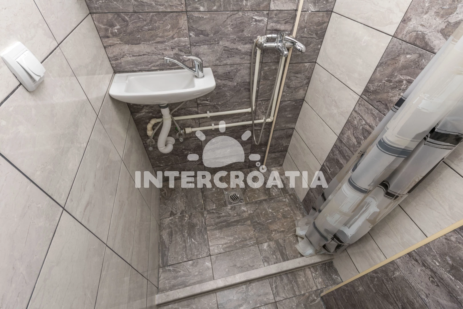 - Místnost je neobyvatelná s neustálým zápachem z odtoku. Uvnitř sprchového koutu je elektrická zásuvka, která je životu nebezpečná, pokud je postel zcela vysunuta.