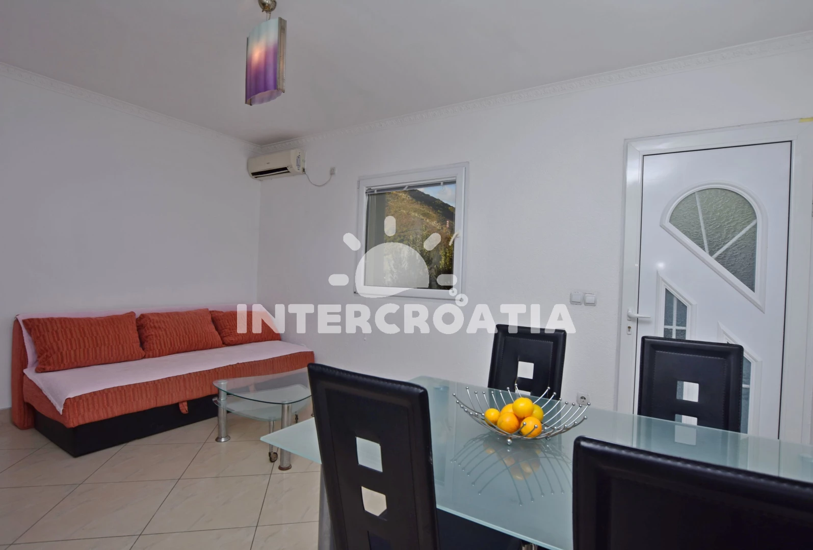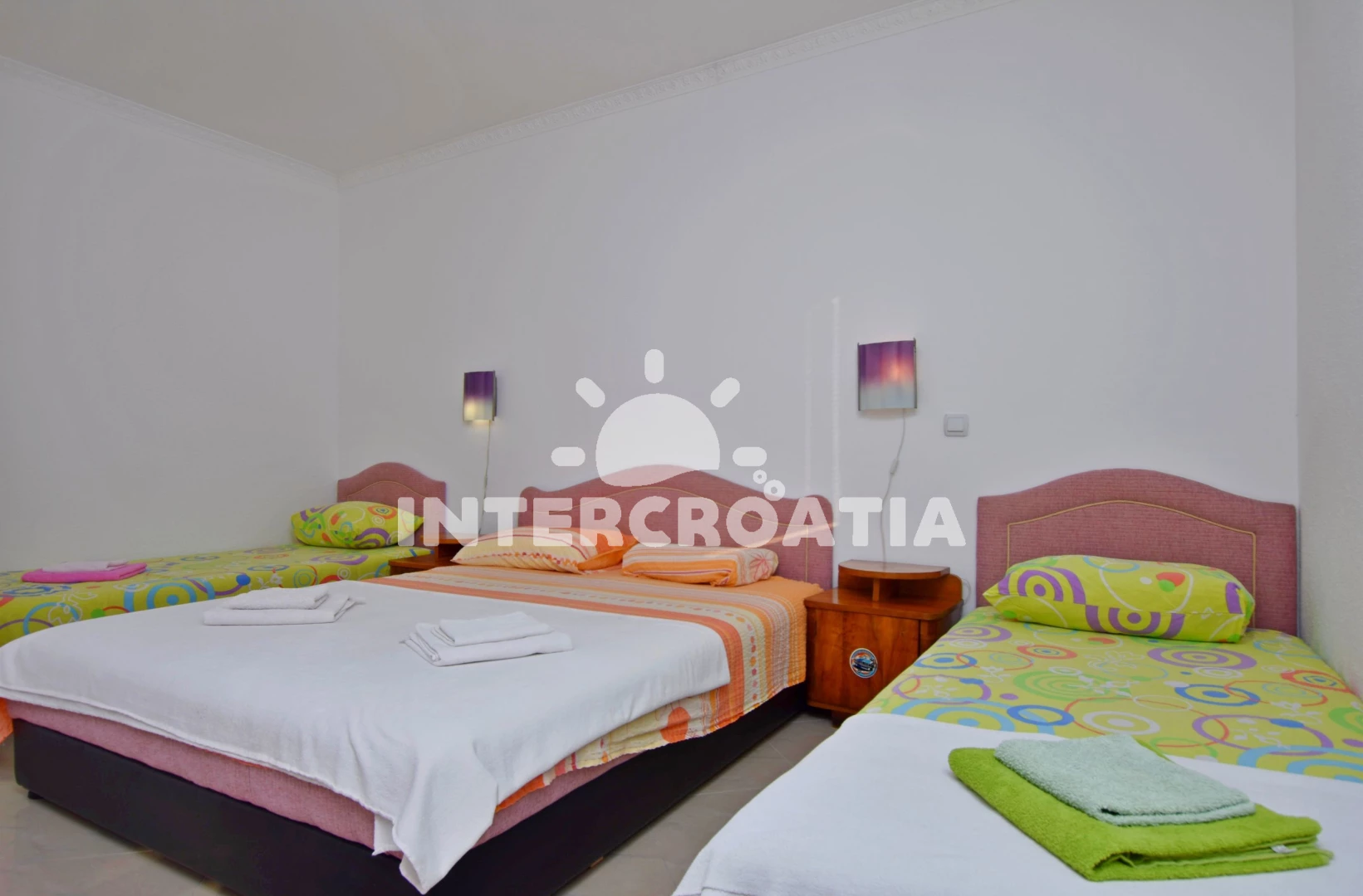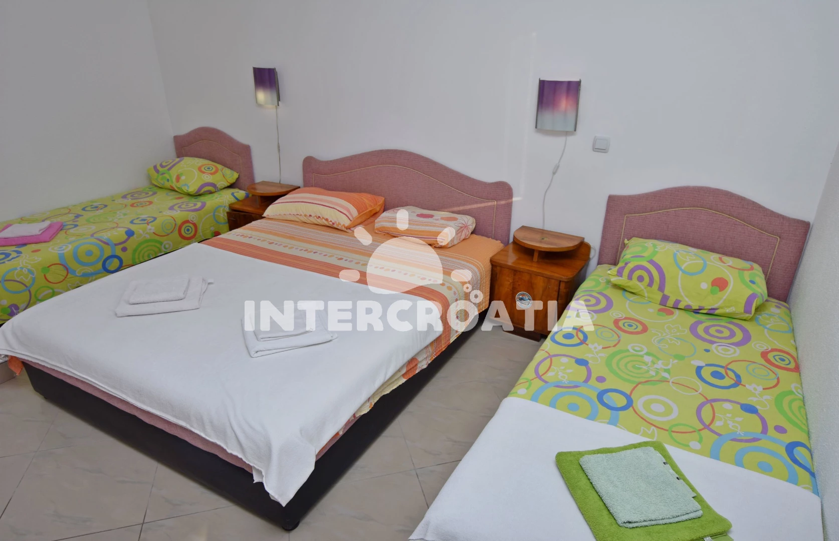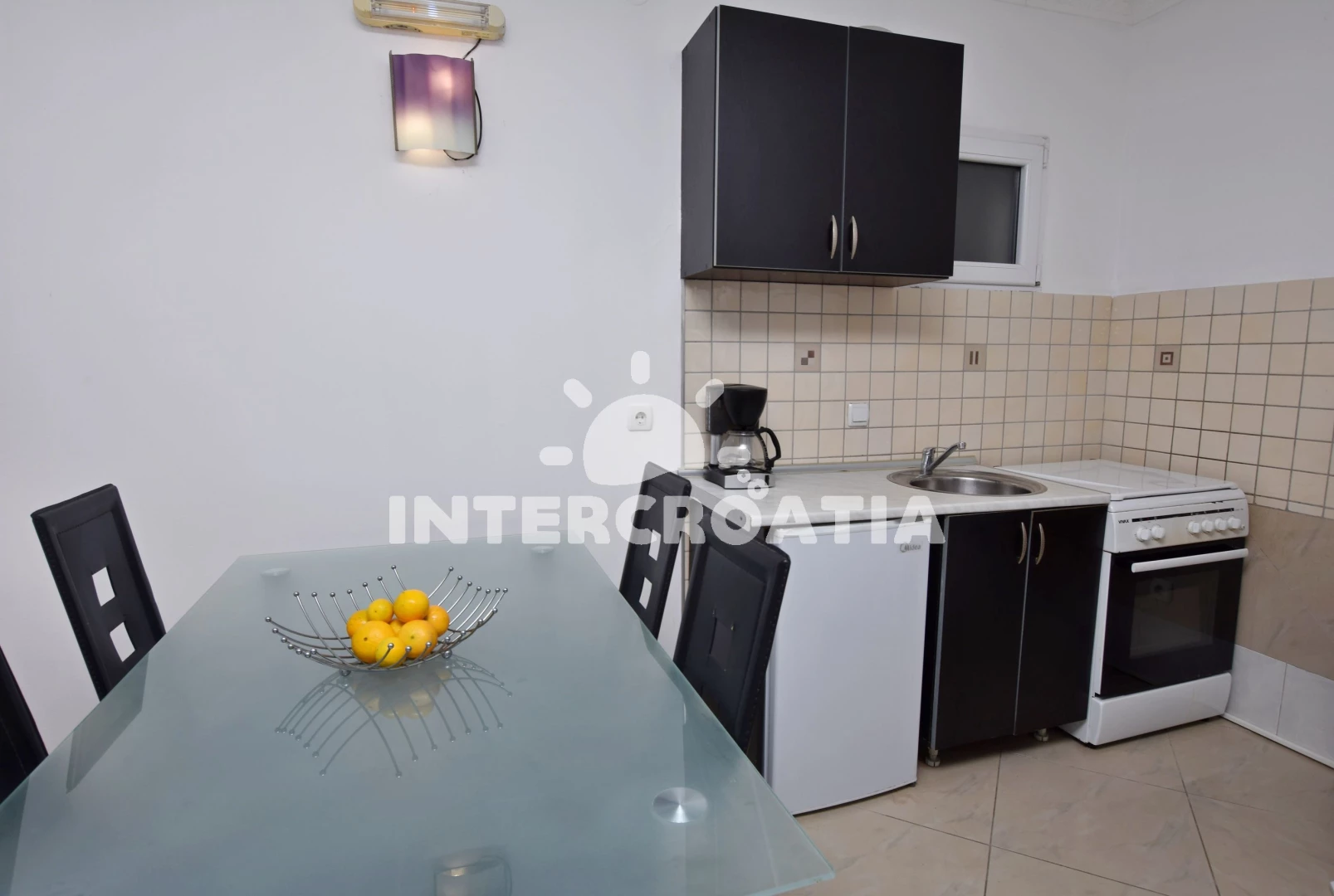 Apartmán se nachází 55 m od moře a pláže. Pláž je oblázková a betonové desky. U objektu je k dispozici společná zahrada s posezením a grilem. Parkování je 50m - 150 m od domu.