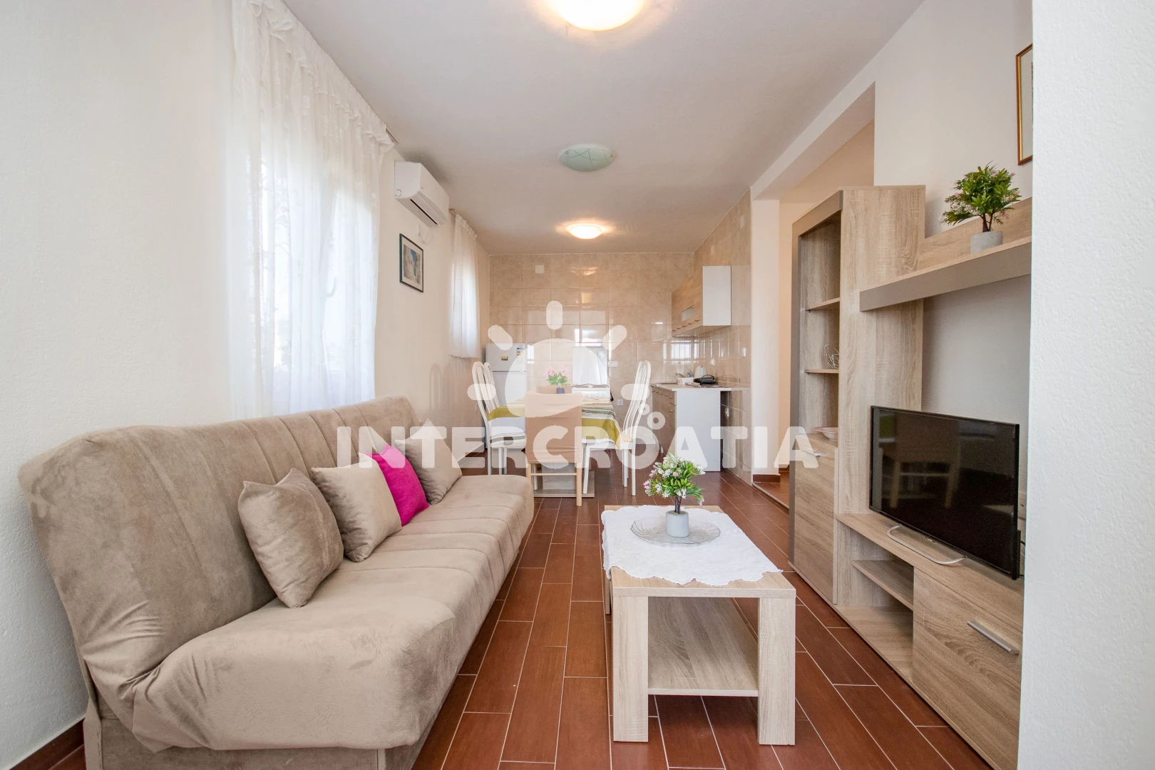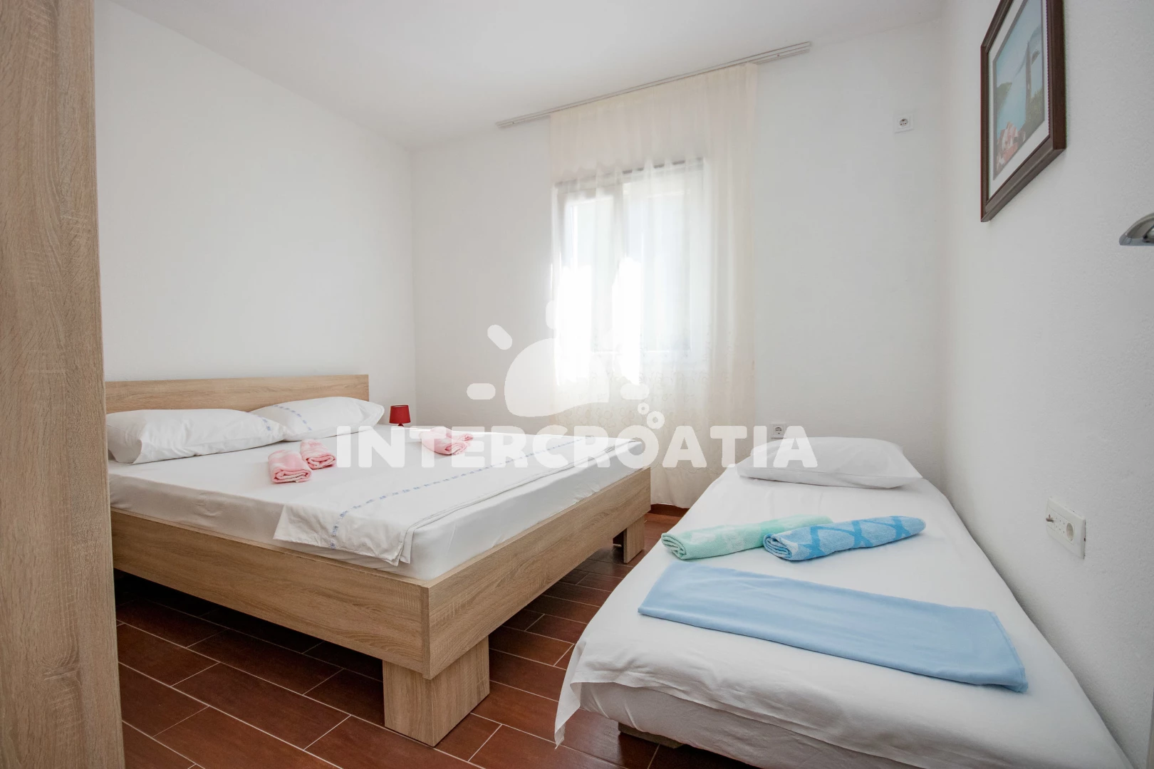 Apartmán se nachází 1500 m od moře a pláže. Pláž je oblázková a větší kamení. U objektu je k dispozici společná zahrada s posezením a grilem. Parkování je před domem.