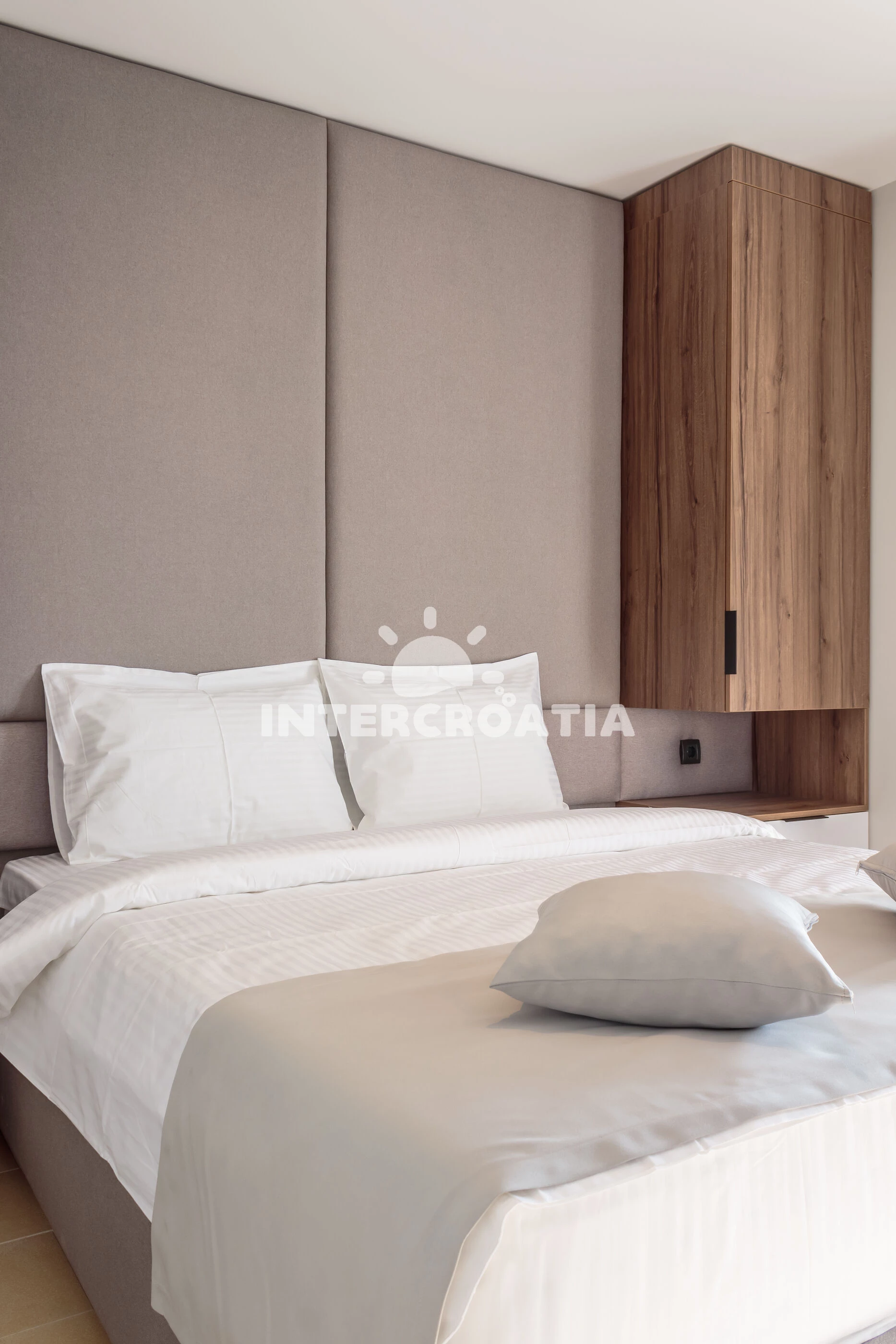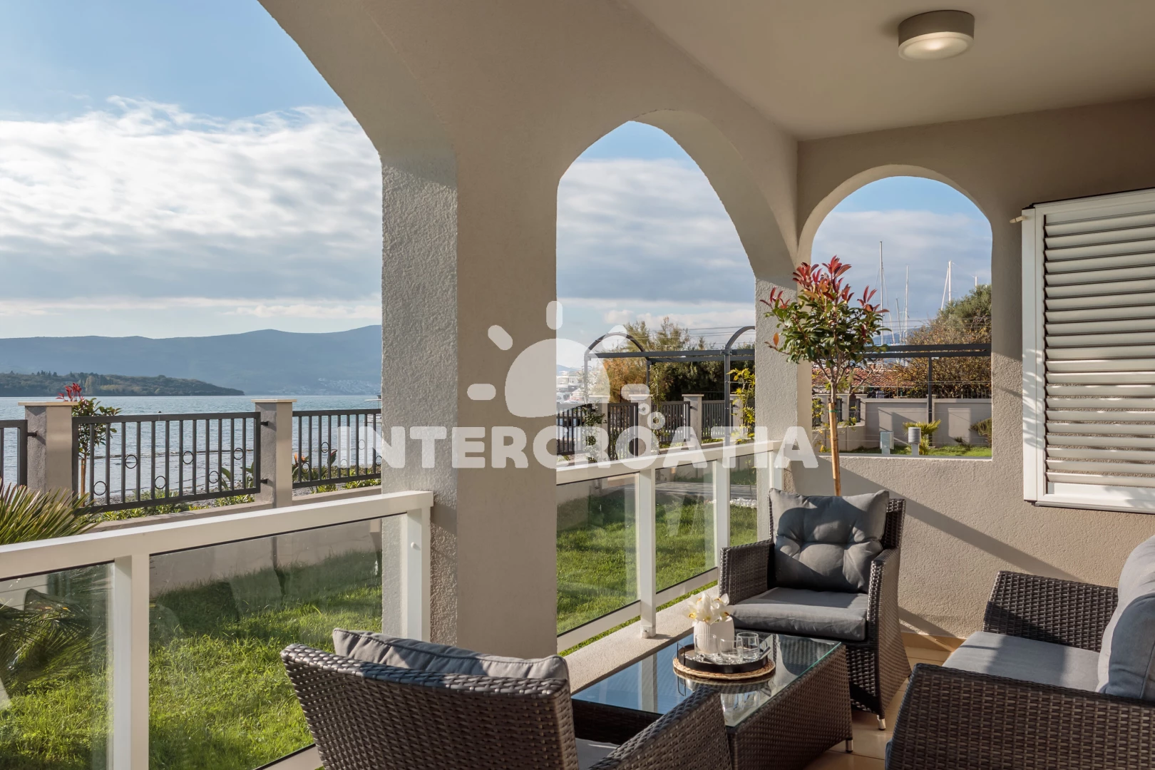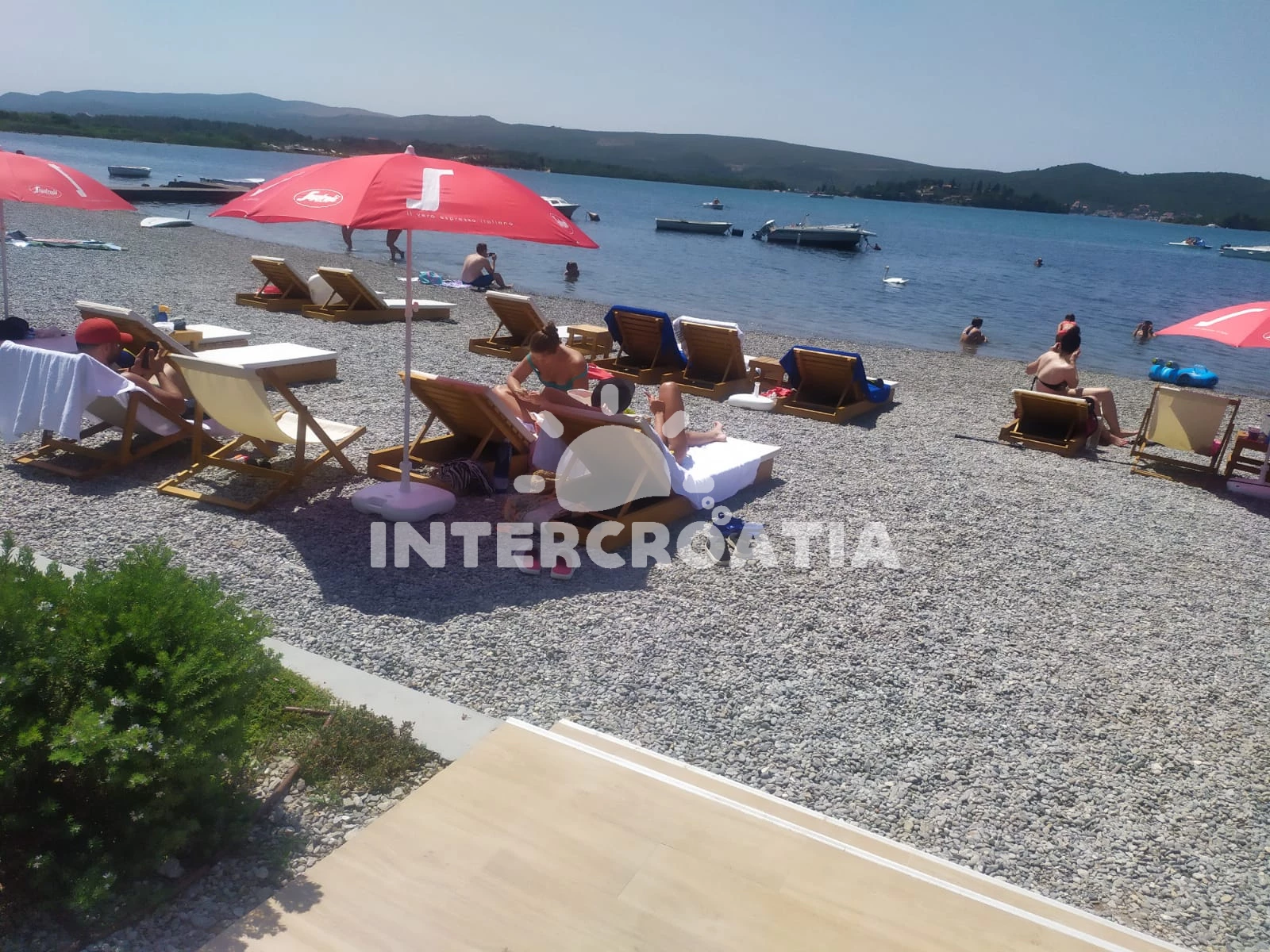 Apartmán se nachází 5 m od moře a pláže. Pláž je oblázková. Apartmán disponuje bazénem s lehátky pro ubytované hosty. K dispozici sauna. U objektu je k dispozici společná zahrada s posezením a grilem. Parkování je před domem.