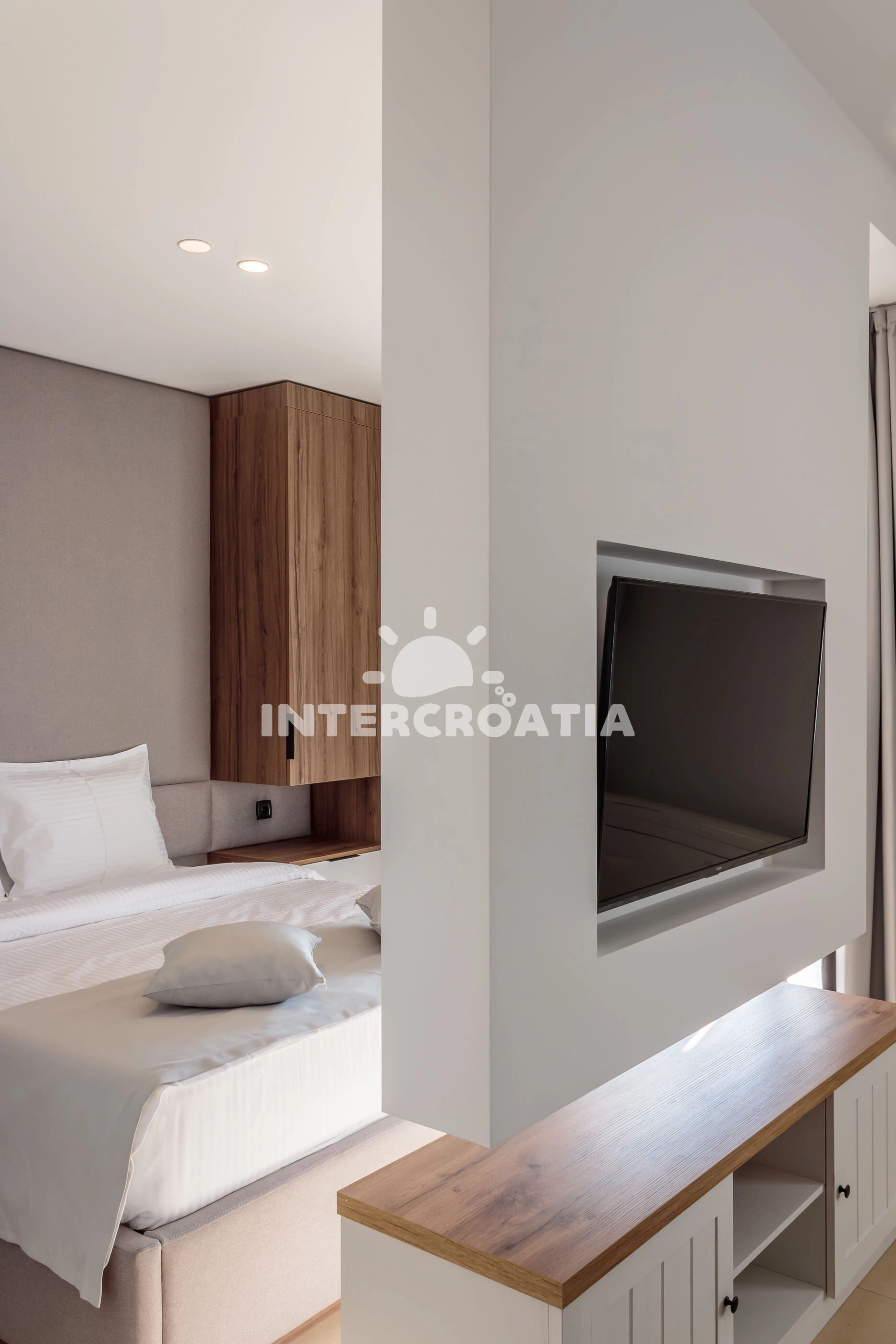 Vzdálenosti: Moře 5 m, pláž 5 m (oblázky), půjčovna kol 5 m, marina 200 m, čerpací stanice 300 m, supermarket 500 m, veřejná doprava 500 m, restaurace 1,7 km, bar 1,7 km, letiště (Tivat) 2 km, centrum 3 km, trajekt 7 km,