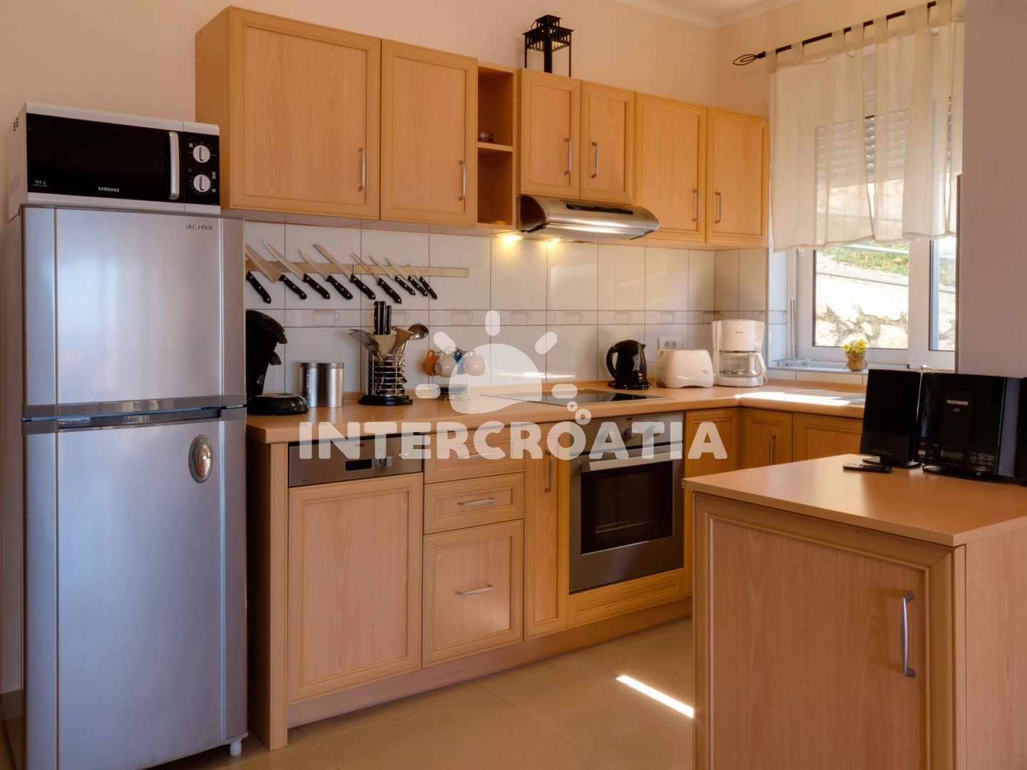 Apartmán se nachází 600 m od moře a pláže. Pláž je skalnatá, oblázková a větší kamení. U objektu je k dispozici společná zahrada s posezením a grilem. Parkování je před domem.