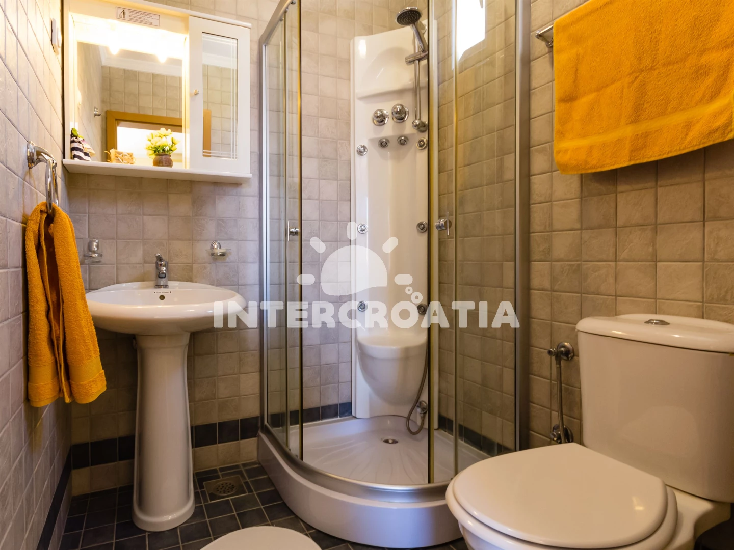 Apartmán se nachází 600 m od moře a pláže. Pláž je skalnatá, oblázková a větší kamení. U objektu je k dispozici společná zahrada s posezením a grilem. Parkování je před domem.