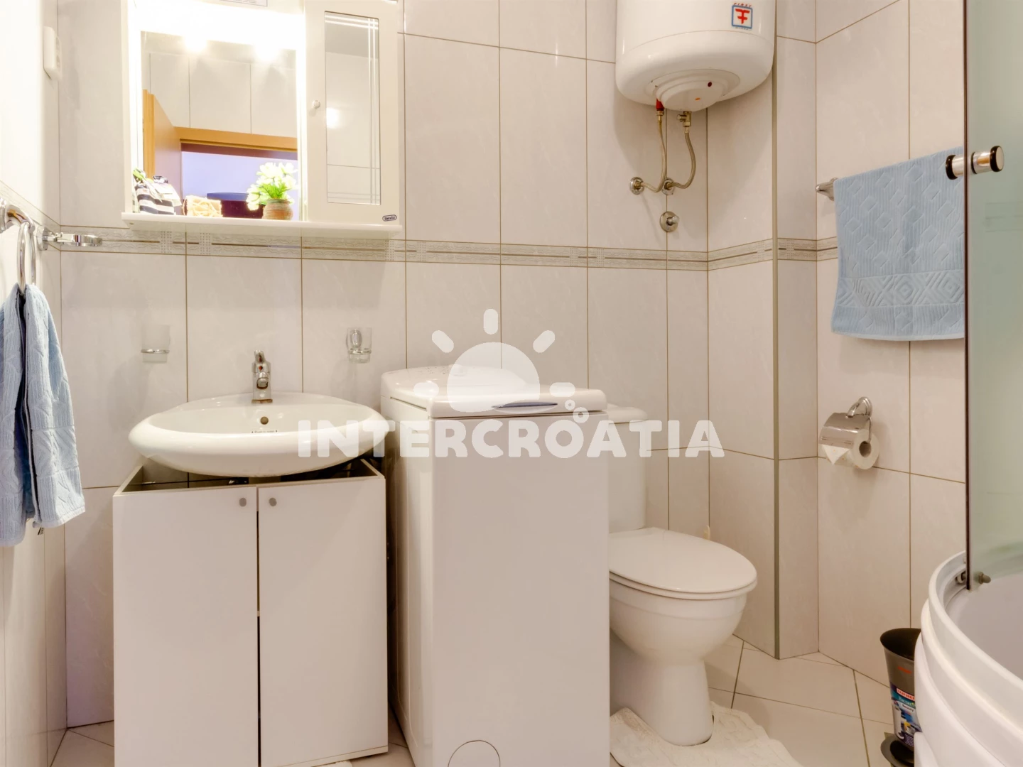 Apartmán se nachází 600 m od moře a pláže. Pláž je skalnatá, oblázková a větší kamení. U objektu je k dispozici společná zahrada s posezením a grilem. Parkování je před domem.