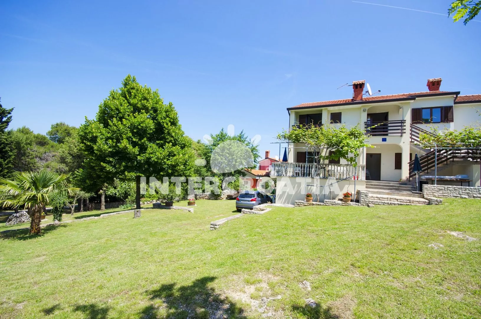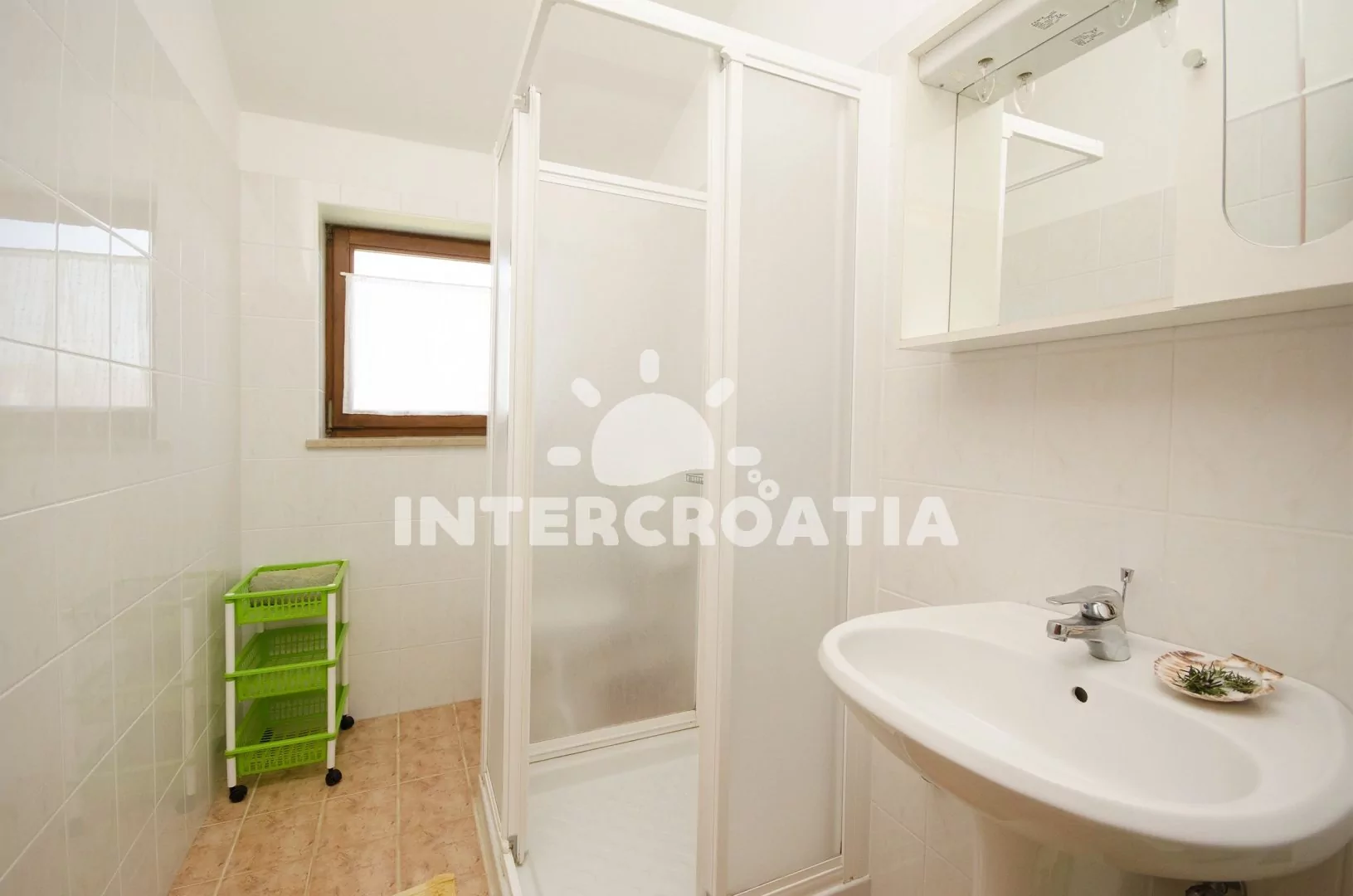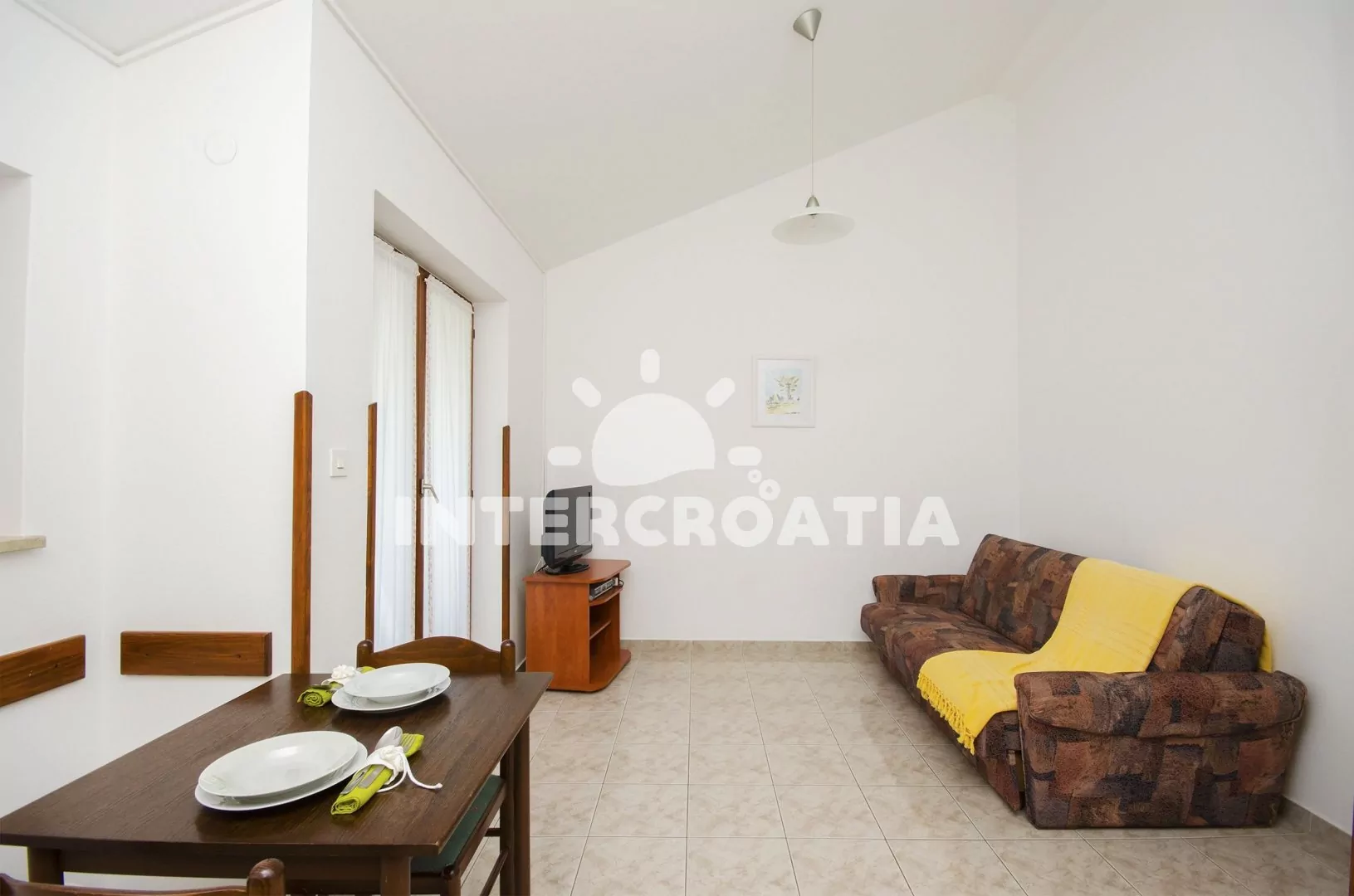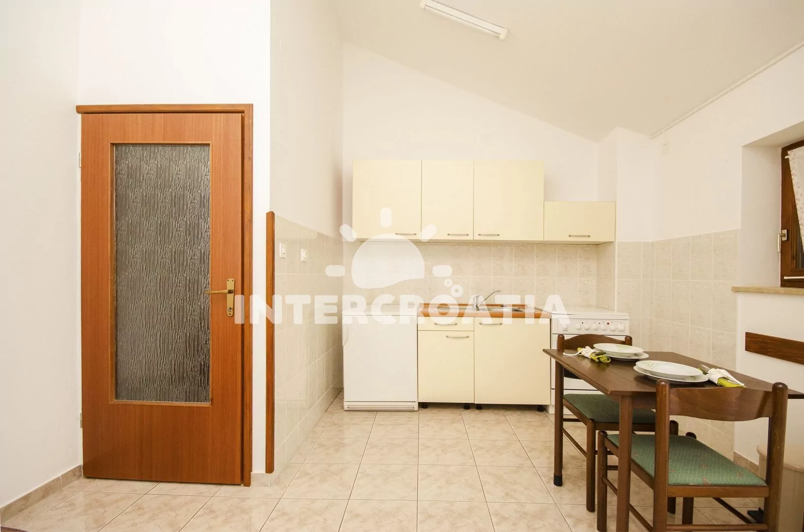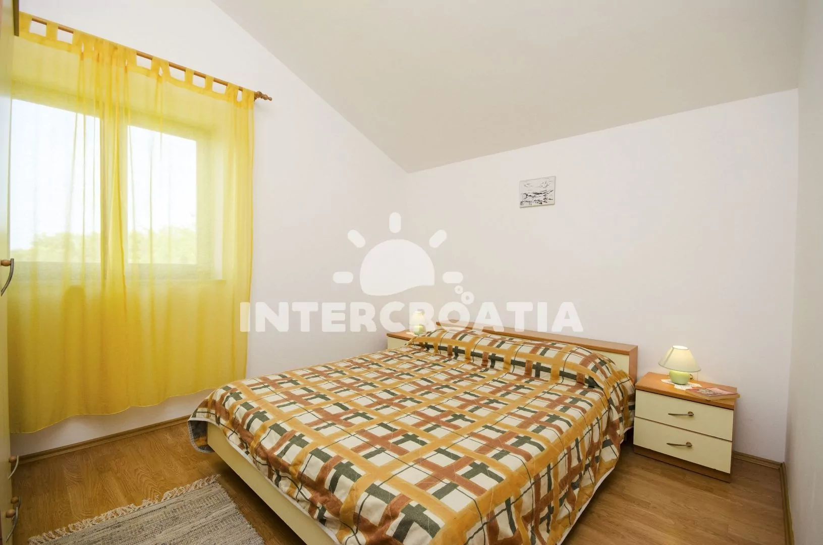 Apartmán s výhledem na moře, balkonem a venkovním posezením se nachází v prvním patře vily a je vhodný pro 2 až 4 osoby. Obývací pokoj je spojený s kuchyní. Kuchyňská linka se sporákem, troubou, kávovarem, nádobím a lednicí s mrazákem. Obývací pokoj s jídelním stolem, pohovkou (rozložitelná na extra lůžko pro 2 osoby), televizí se satelitním programem a vstupem na balkon. Ložnice je vybavena jedním dvoulůžkem. Koupelna se sprchovým koutem, umyvadlem a wc. Hostům je k dispozici parkování u objektu zdarma.