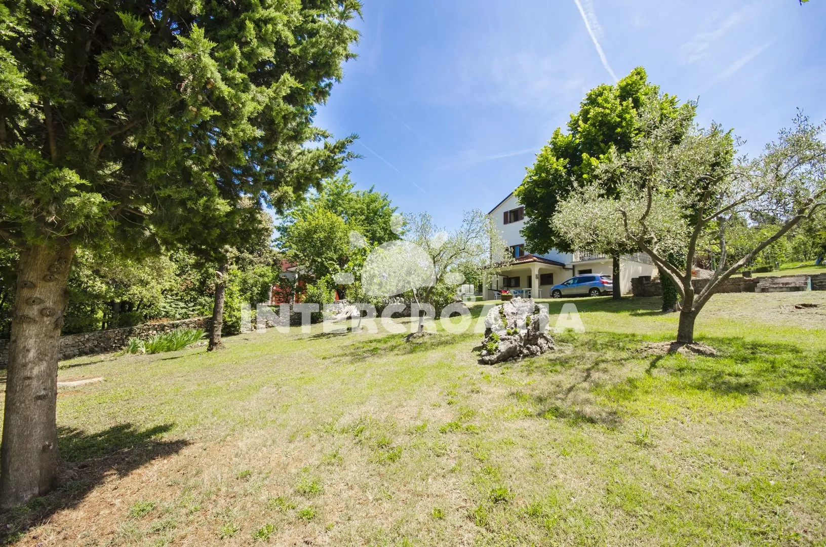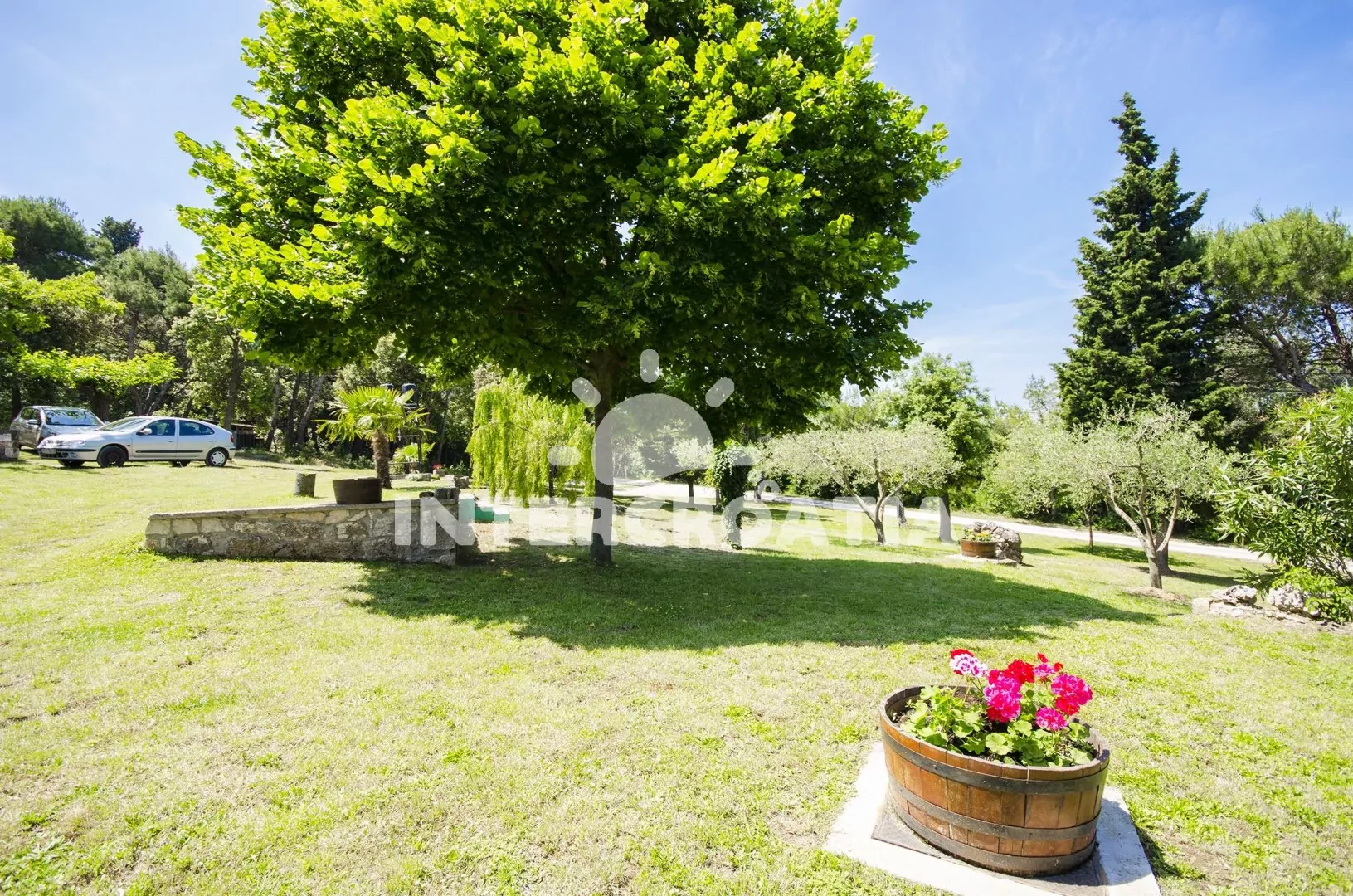 duży teren posesji z mnóstwem zieleni
