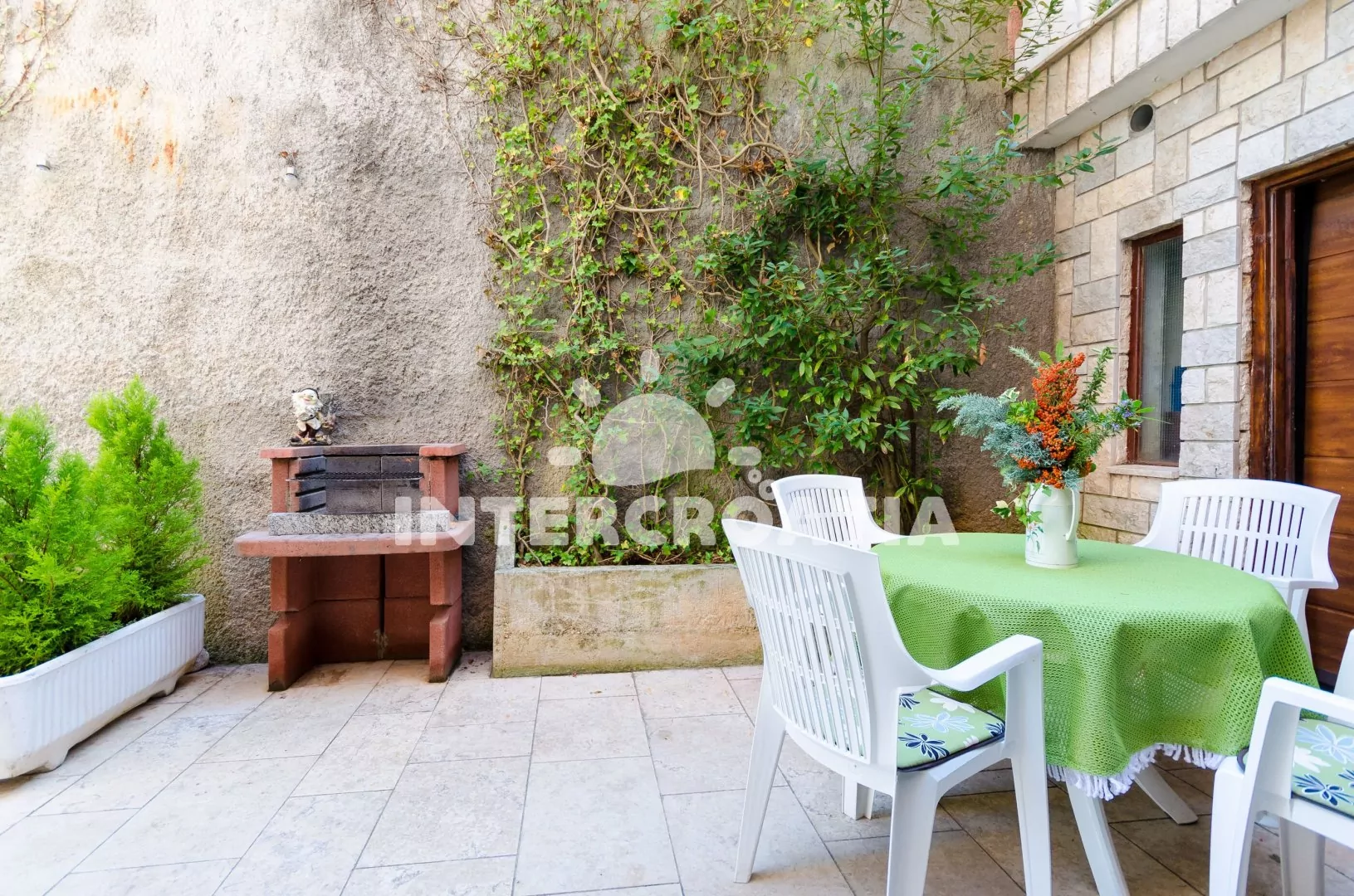 Patrový domek v zahradě s terasou a dobrou dostupností jak na pláž, tak do centra obce.