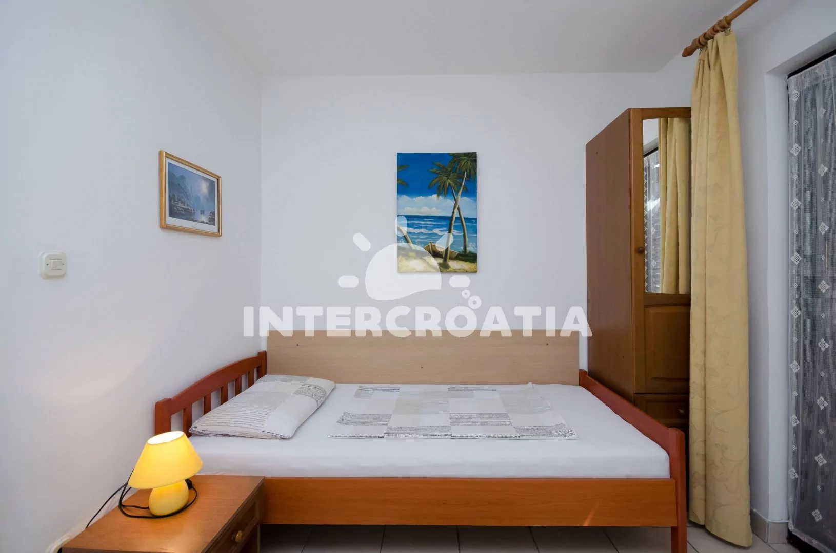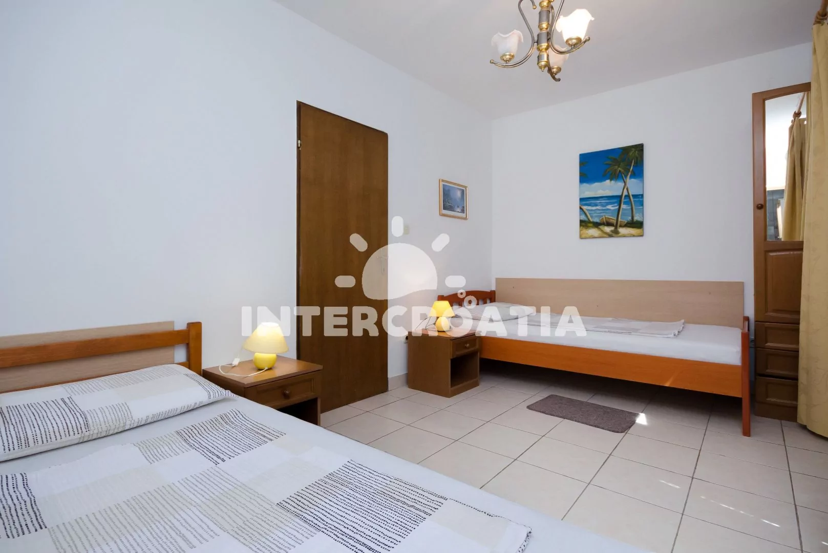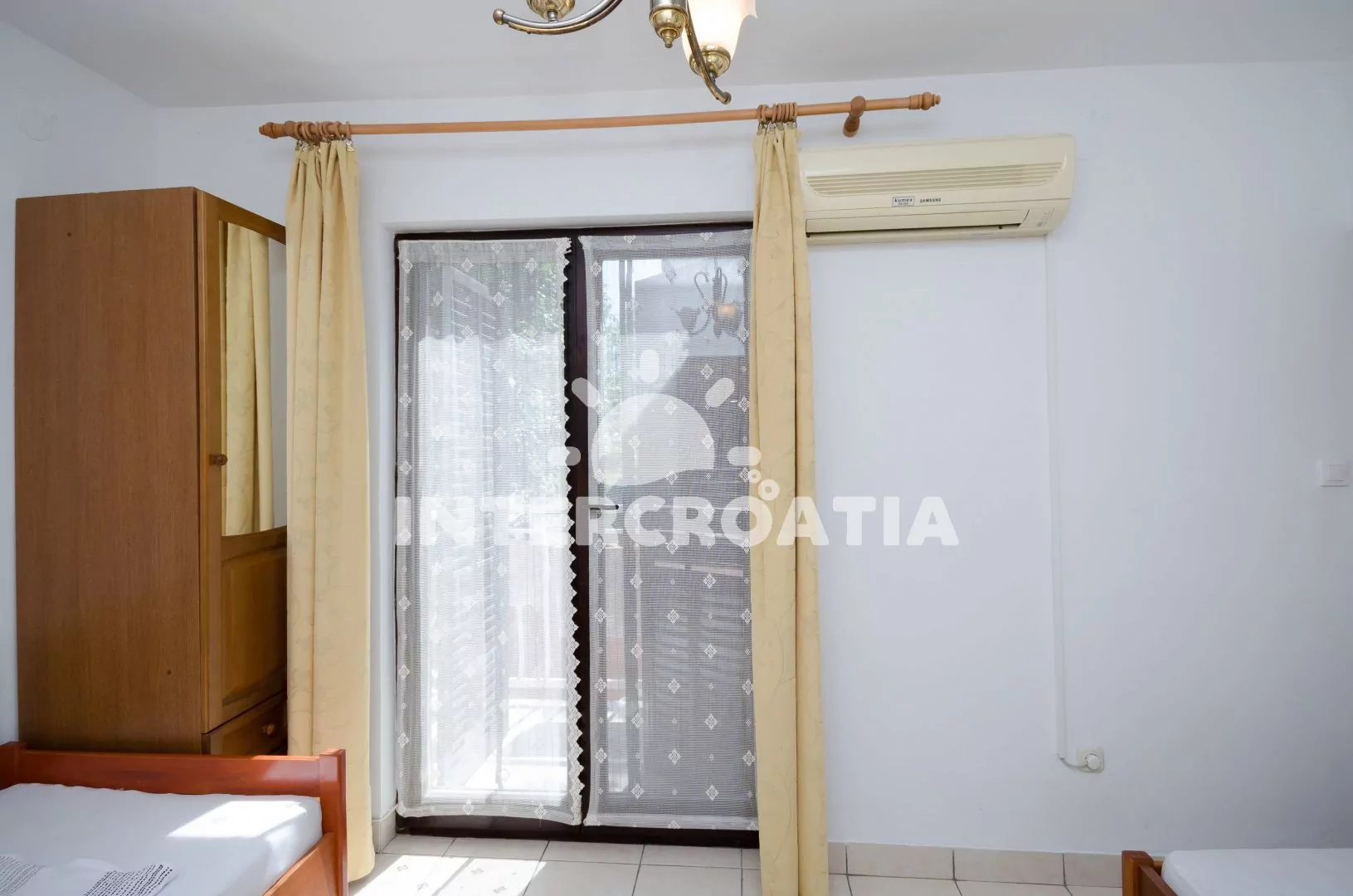 Třípodlažní domek v zahradě s terasou a dobrou dostupností jak na pláž, tak do centra obce.
