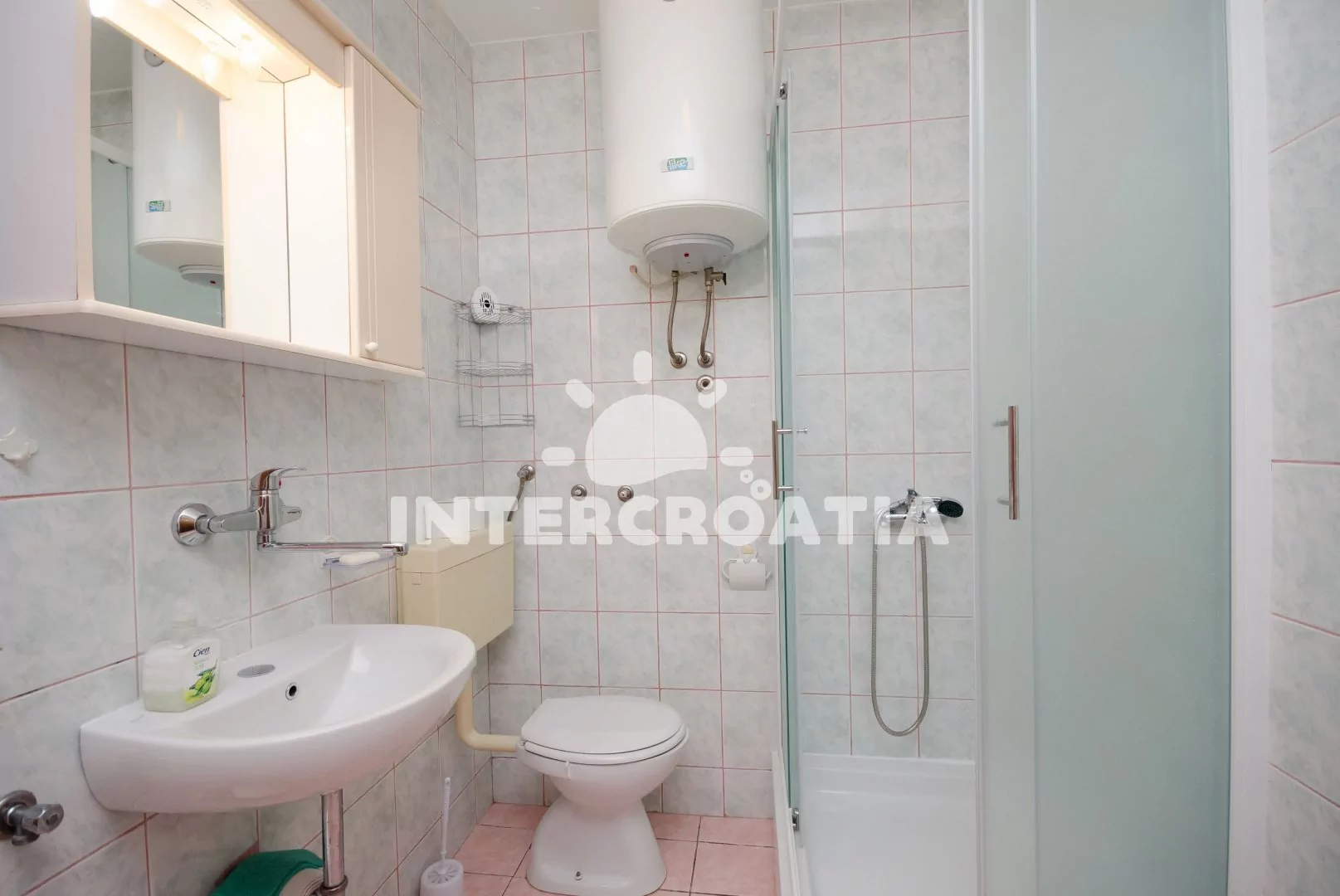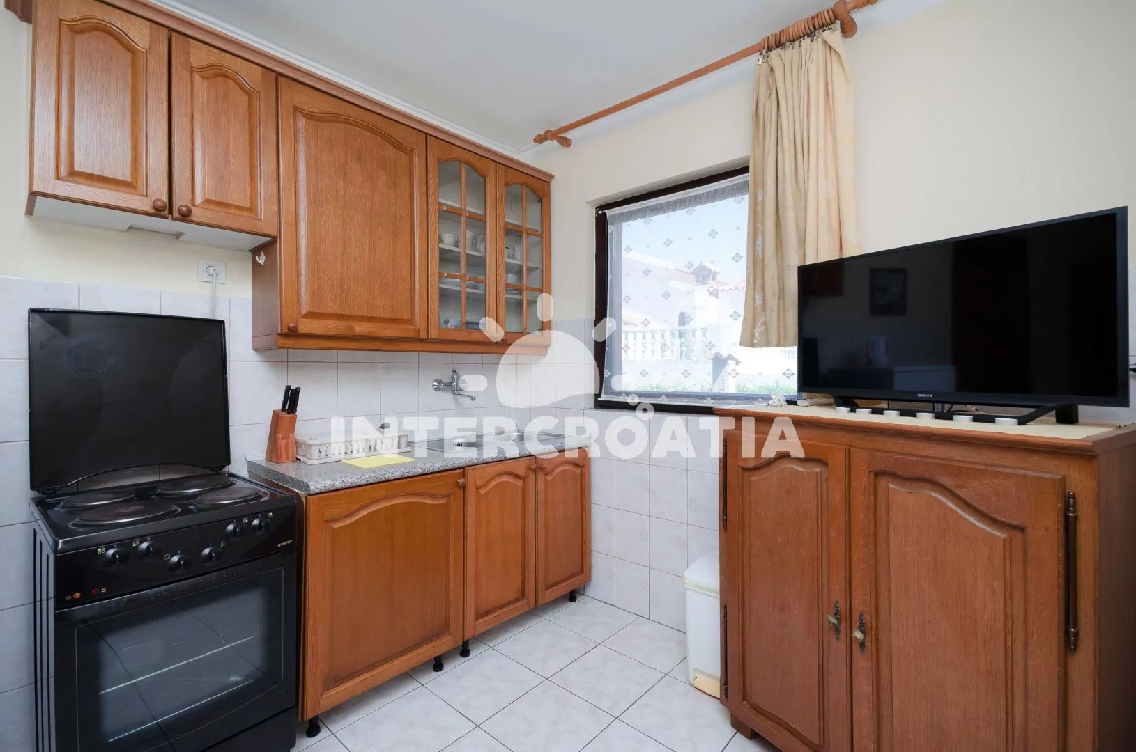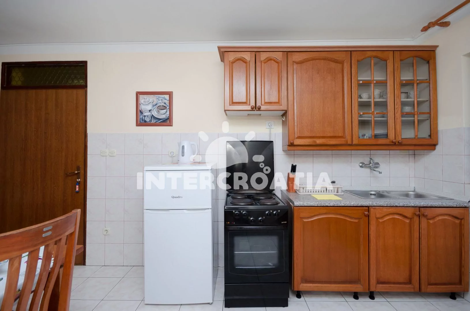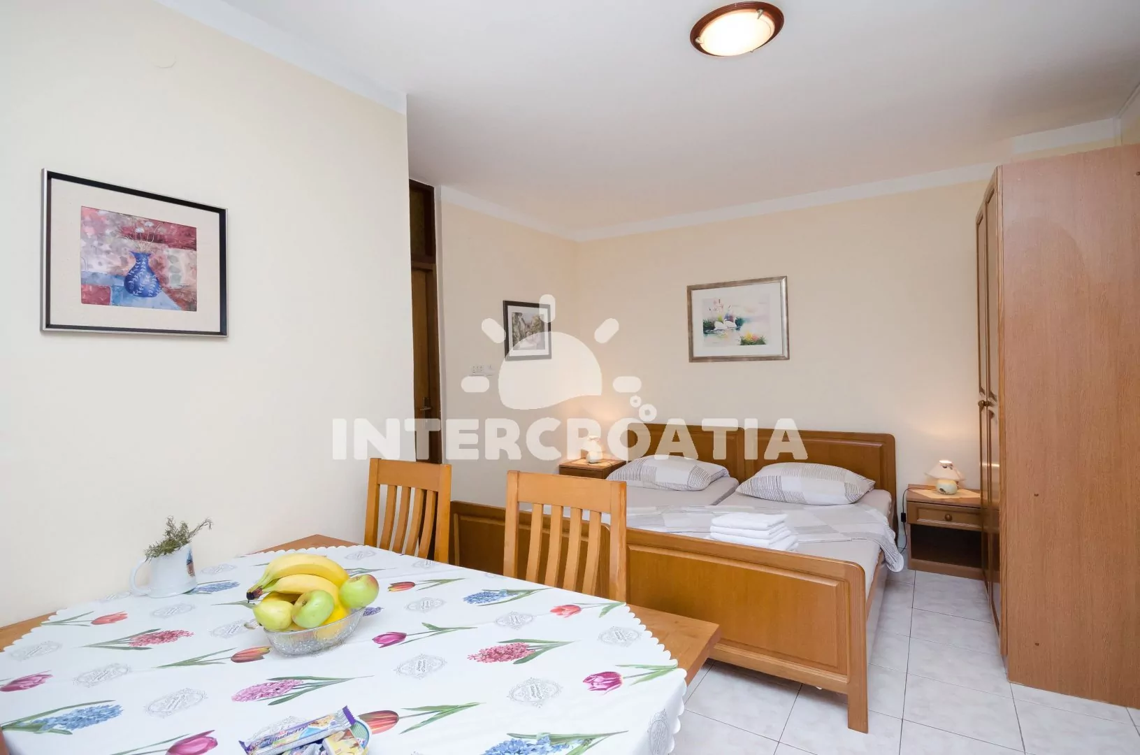 Třípodlažní domek v zahradě s terasou a dobrou dostupností jak na pláž, tak do centra obce.