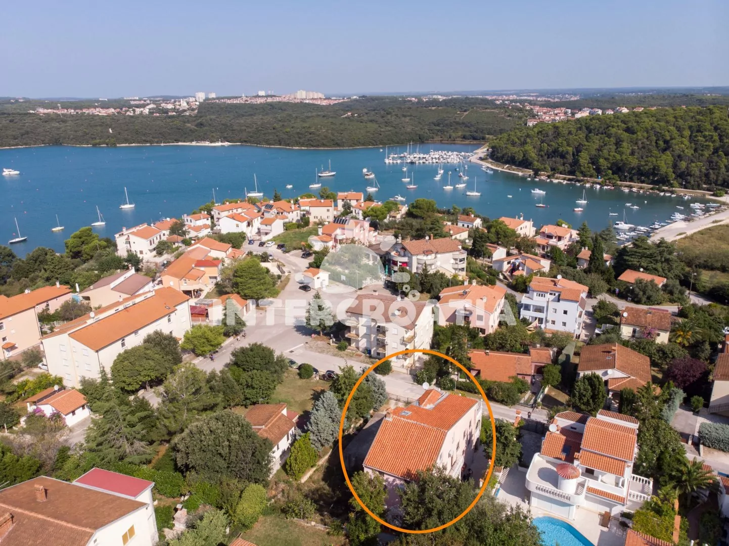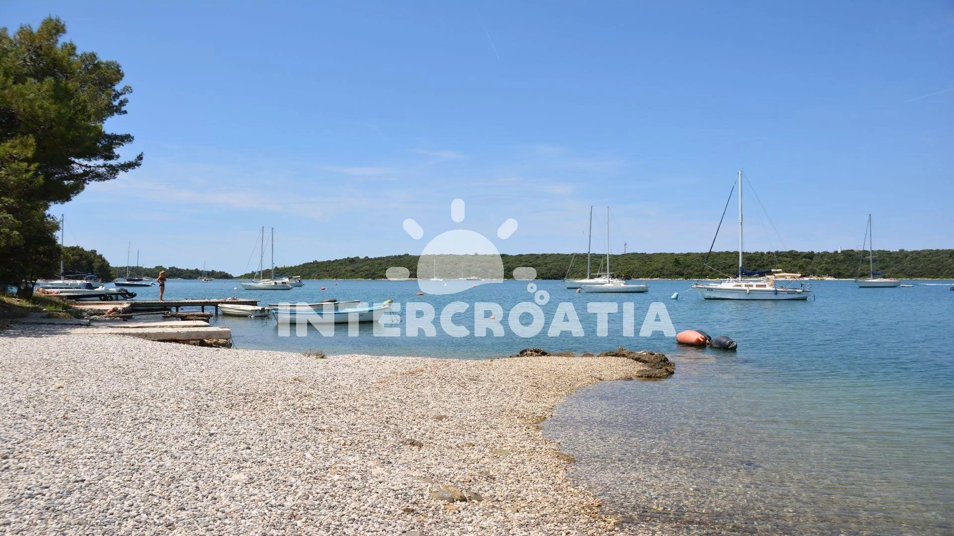 Vzdálenosti: Moře 200 m, pláž (skalnatá a oblázková) 400 m, centrum 400 m, market 70 m, pošta 5 km, lékárna 5 km, nemocnice 300 m, restaurace 200 m, muzeum 5 km, směnárna 300 m, banka 5 km, přístav 3 km, kotviště pro čluny 100 m, potápěčský klub 800 m, půjčovna motorových člunů 5 m, půjčovna kol 5 m, tenisové kurty 800 m, minigolf 800 m, venkovní bazén 5 km, vnitřní bazén 5 km, diskotéka 5 km, bar 200 m, čerpací stanice 1 km, veřejná doprava 200 m, trajekt (Pula) 7 km, letiště (Pula) 12 km.