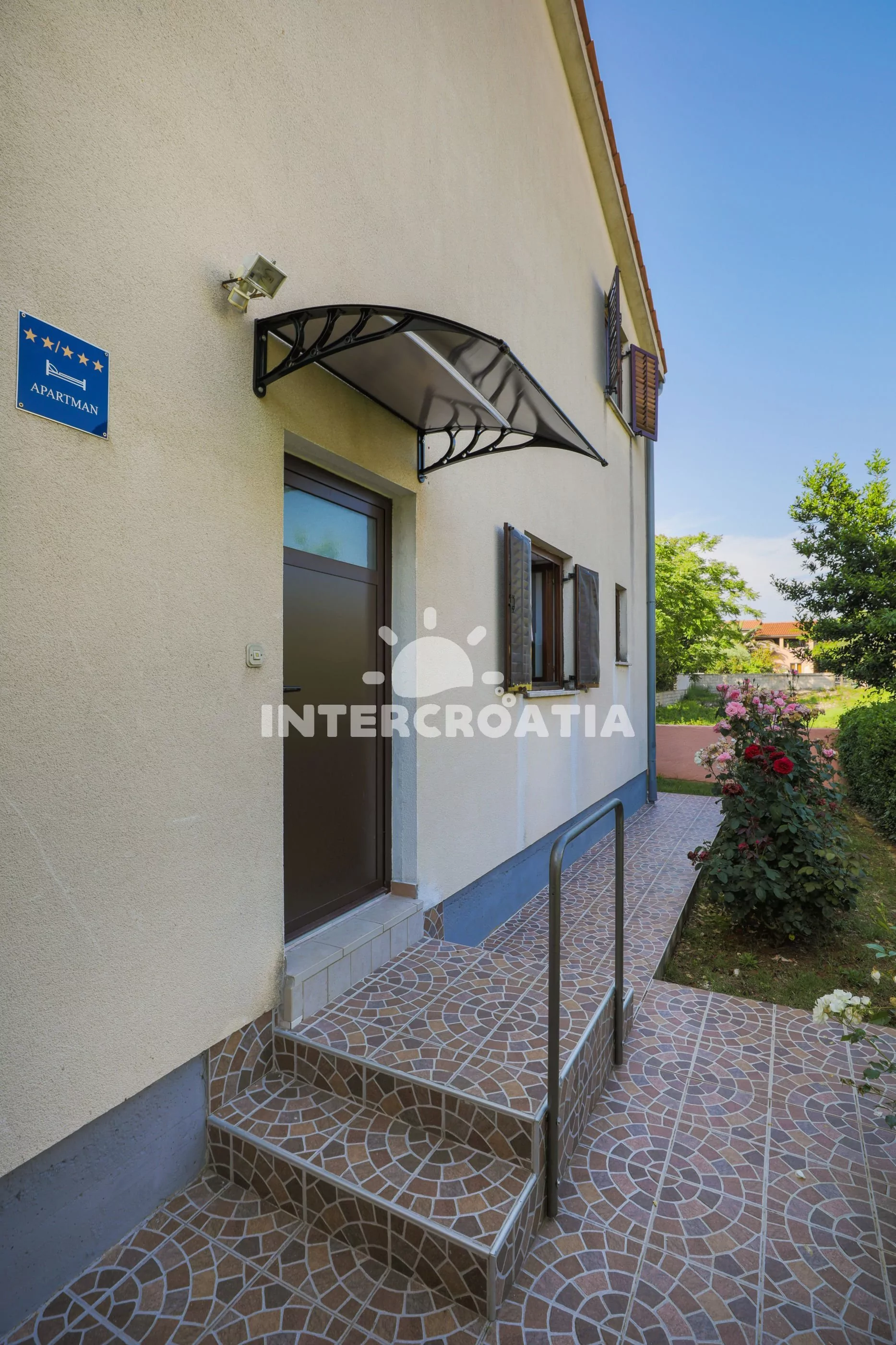 Vzdálenosti: Moře 150 m, centrum 30 m, pláž (skalnatá, oblázková a betonové desky) 150 m, velká oblázková pláž 400 m, restaurace 100 m, supermarket 30 m, pošta 500 m, lékárna 70 m, nemocnice 70 m, směnárna 100 m, venkovní bazén 700 m, vnitřní bazén 1 km, potápěčský klub 700 m, tenisové kurty 3 km, půjčovna kol 100 m, muzeum 150 m, banka 100 m, pošta 100 m, bar 50 m, diskotéka 8 km, přístav 8km, kotviště pro čluny 100 m, půjčovna motorových člunů 700 m, čerpací stanice 200 m, diskotéka 5000 m, veřejná doprava 20 m, autobusová a vlaková zastávka 8 km, letiště (Pula) 11 km.
