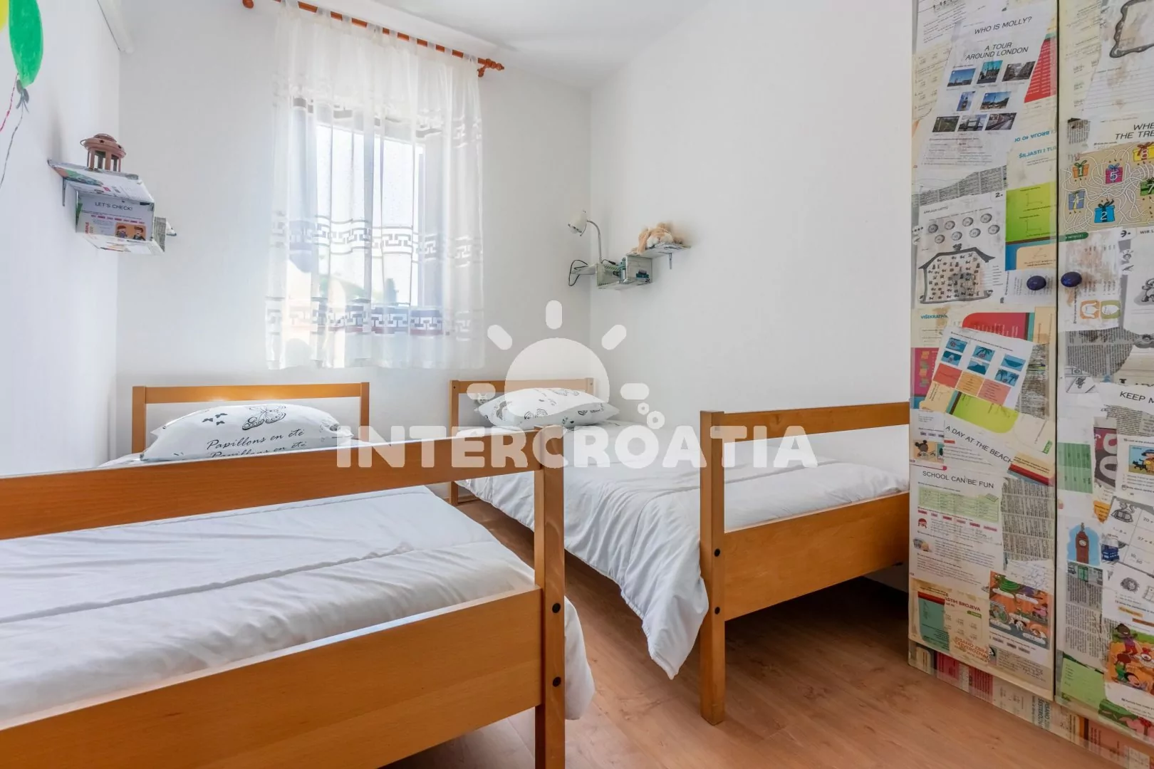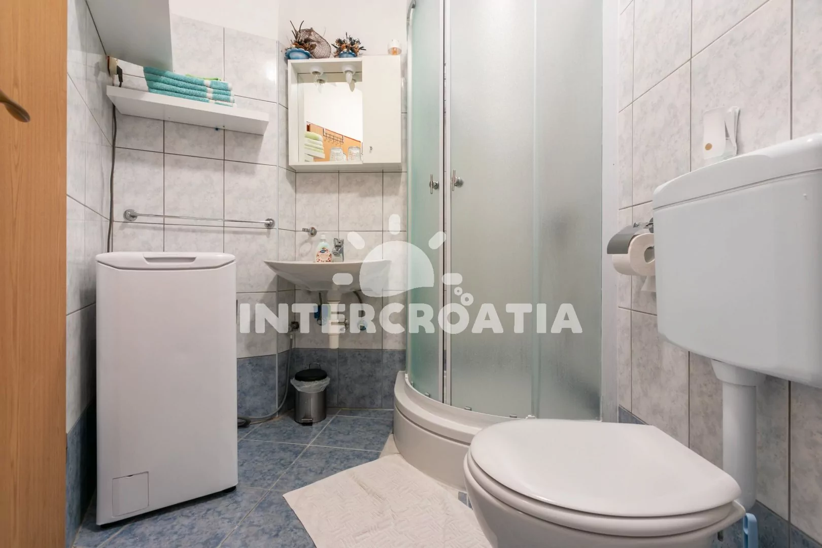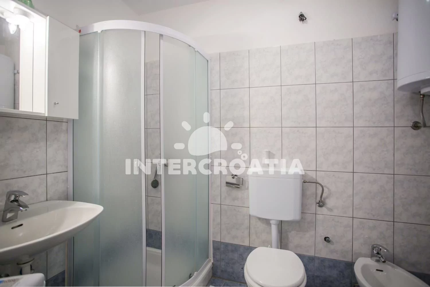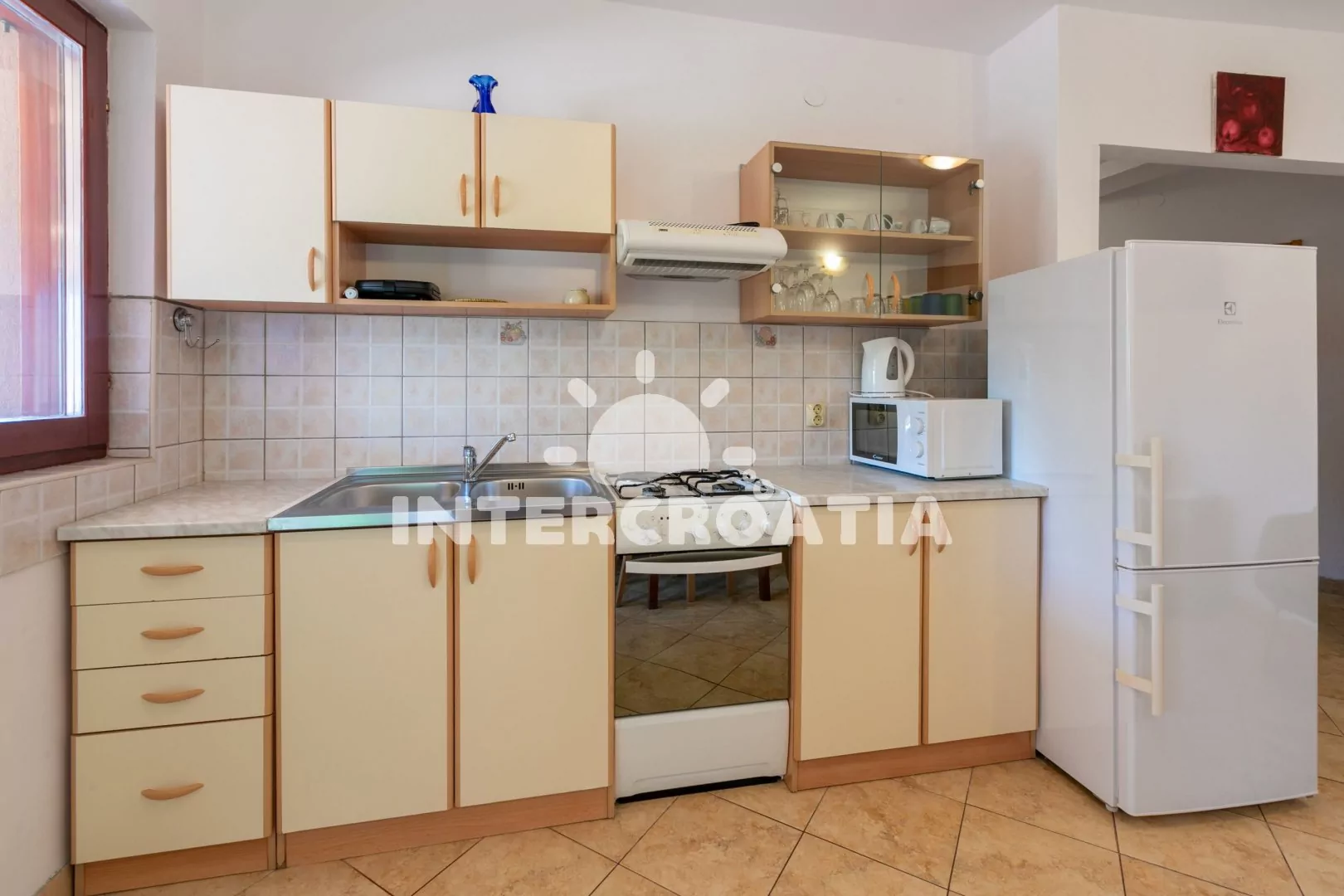 Velmi dobře umístěný dům v klidné ulici s docházkovou vzdáleností k oblázkové pláži a k moři. V blízkosti domu supermarket Plodine. Parkovací místa pro automobil u domu.