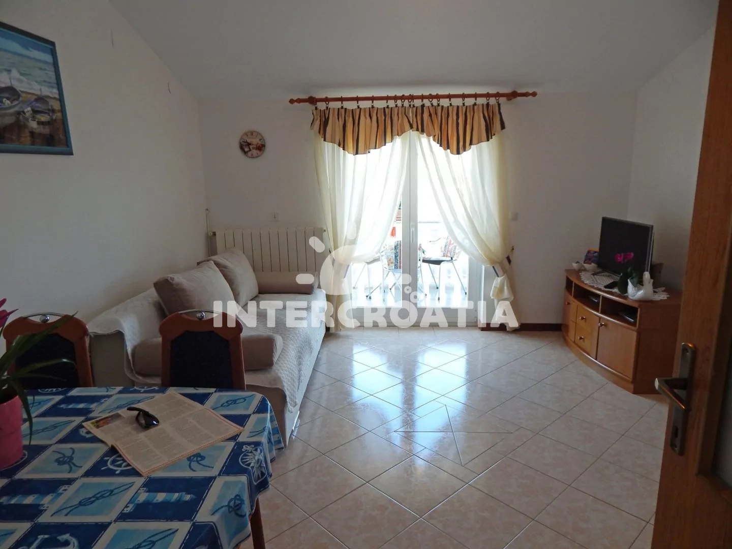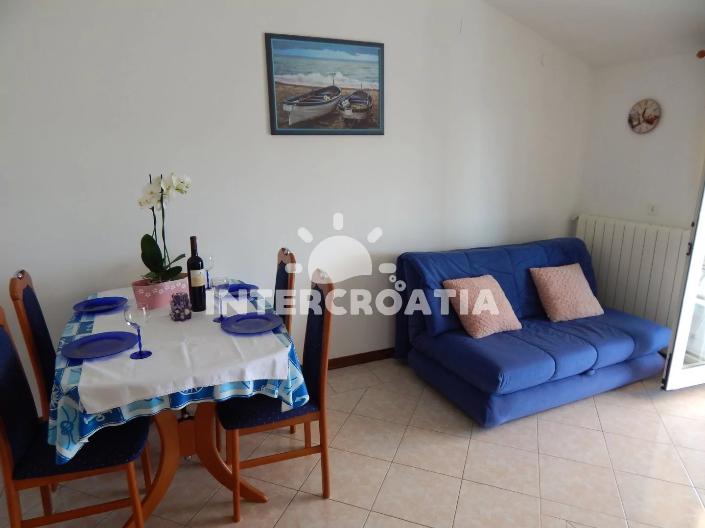 Apartmán s balkonem a výhledem na moře se nachází v prvním patře a je vhodný pro 2 osoby. Obývací pokoj je spojený s kuchyní. Kuchyňská linka je vybavena sporákem, myčkou na nádobí, rychlovarnou konvicí, kávovarem, nádobím a lednicí s mrazákem. Obývací pokoj s jídelním stolem pro 4 osoby, pohovkou, televizí a vstupem na balkon. Ložnice s jedním dvoulůžkem. Koupelna se sprchovým koutem, umyvadlem a wc. Hostům je k dispozici parkování u objektu zdarma.