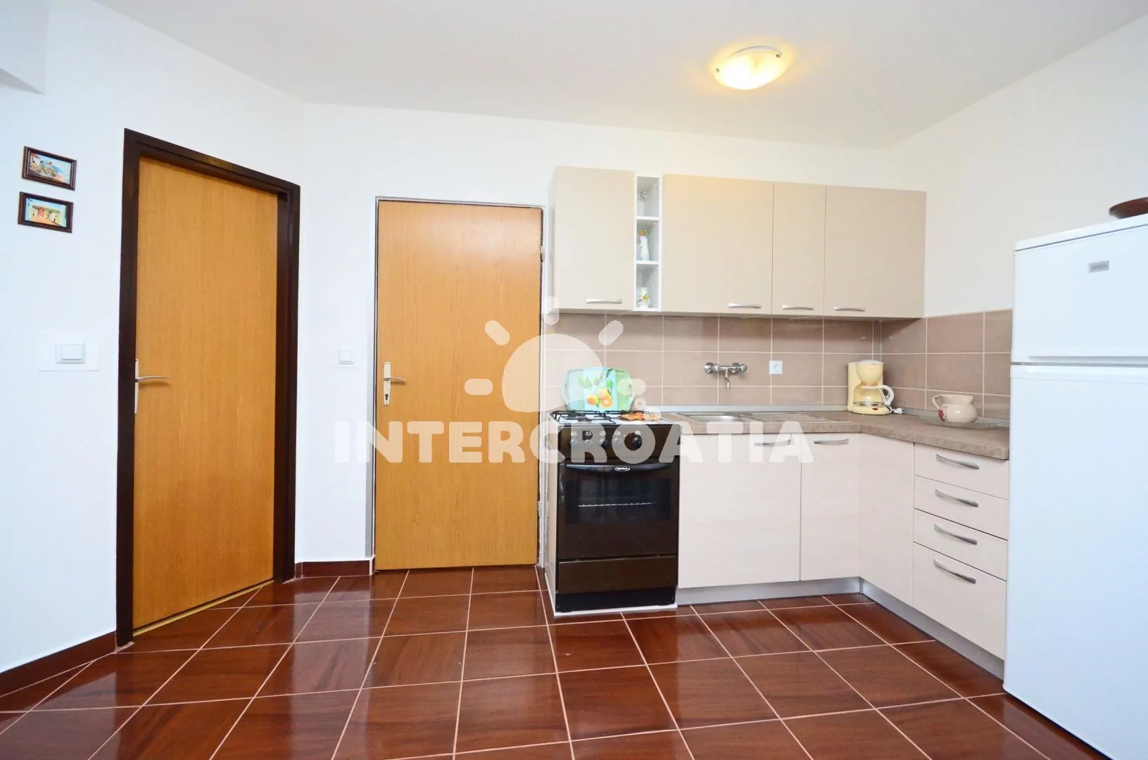 Velmi dobře umístěný a samostatně stojící apartmánový dům. K oblázkové pláži a moři dojdete za 4 minuty pěší chůzí a supermarket Plodine je vzdálený pouze 95 m od ubytování. Kolem domu zahrada s terasou, venkovním posezením a grilem. K dispozici prolézačky pro děti a parkovací místa u domu.