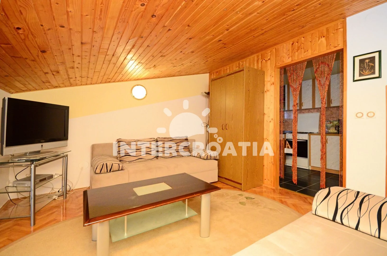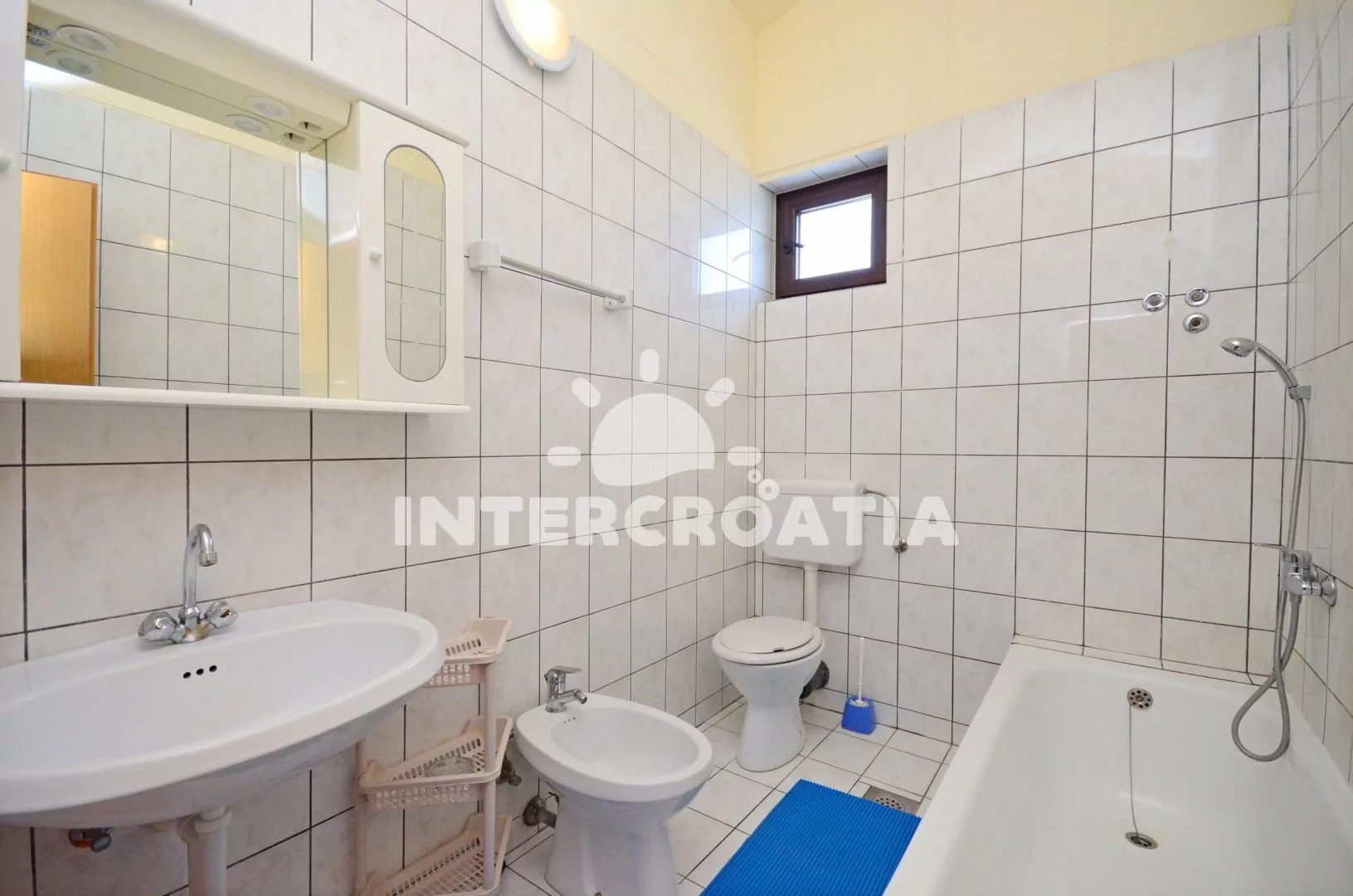Apartmán (80 m2) s terasou, venkovním posezením, částečným výhledem na moře a do klidné ulice se nachází v 2. patře domu. Apartmán je vhodný pro 4 až 6 osob. Obývací pokoj je spojený s kuchyní.…