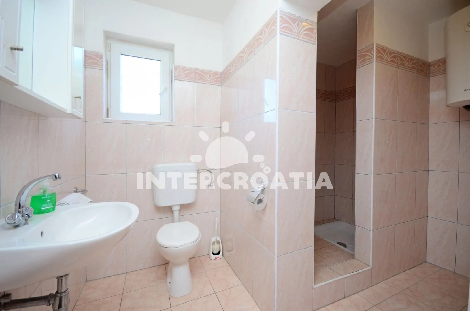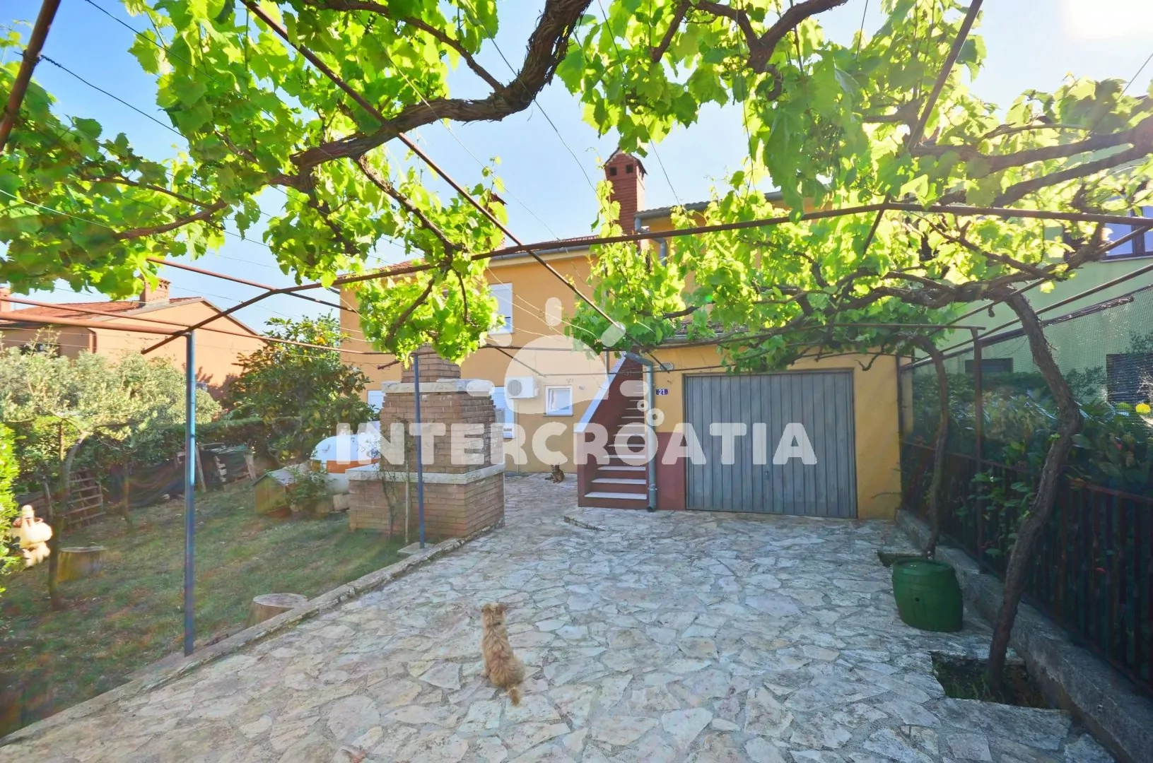 Vhodně umístěný dům s dvěma apartmány, docházkovou vzdáleností k moři, oblázkové pláži a do centra města. U domu zahrada s posezením a zděným grilem. Parkovací místa u objektu.