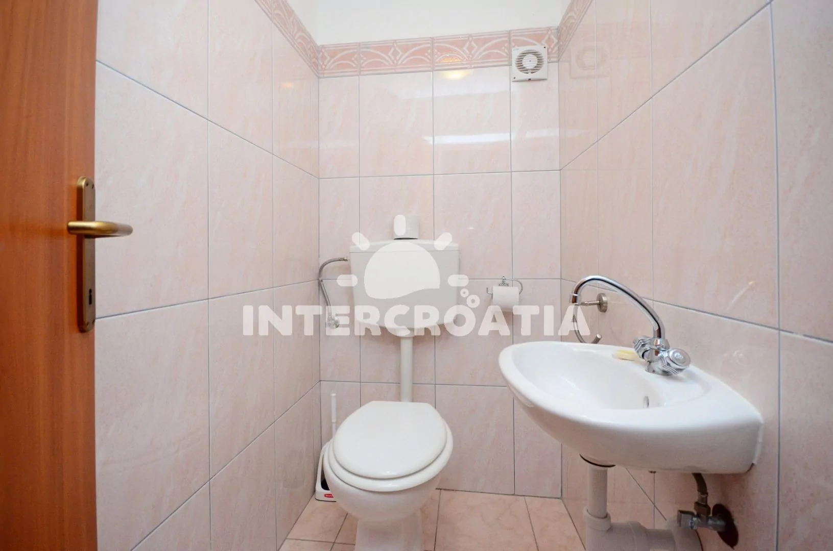 Apartmán (80 m2) s terasou a výhledem na moře se nachází v 1. patře domu a je vhodný pro 5 až 7 osob. Obývací pokoj je spojený s kuchyní. Kuchyňská linka je vybavena sporákem s troubou, kávovarem, mikrovlnnou troubou, nádobím a lednicí s mrazákem. Obývací pokoj s jídelním stolem pro 6 osob, pohovkou (rozložitelná na extra lůžko pro 2 osoby), televizí se satelitním programem, klimatizací a vstupem na terasu. První ložnice s dvoulůžkem. Druhá ložnice s dvoulůžkem a jedním jednolůžkem. Koupelna se sprchovým koutem, umyvadlem a wc. Hostům je k dispozici parkování u objektu zdarma.