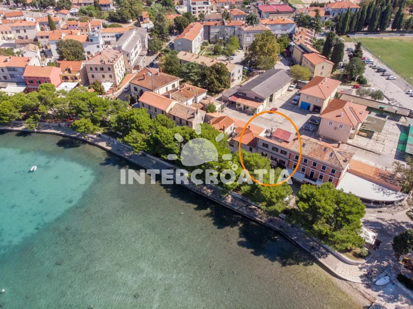 Vzdálenosti: Moře a oblázková pláž 50 m, bar 10 m, lékárna, ambulance 20 m, směnárna 25 m, restaurace, banka, pošta, přístav 30 m, supermarket, čerpací stanice, muzeum, půjčovna cyklistických kol a motorových člunů 50 m, veřejná doprava 100 m, tenis 2,5 km, potápění 3 km, trajekt 10 km, letiště 15 km.