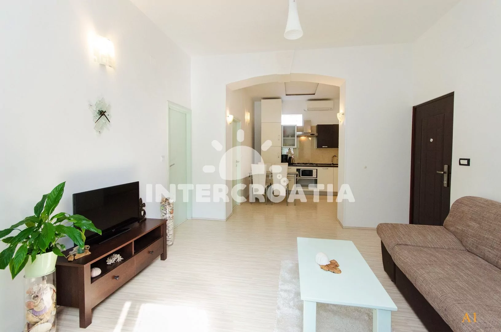The location is on the beach front so you have views across the sea to the Brijana national park, nice shops along the street and a really buzzy atmosphere in the evenings. The only downside of this is that it can be quite noisy at night. The beack stretches for several kms in each direction and so it never gets too busy. It''s a fantastic location for a family beach holiday and a visit by boat to Brijana is a must. - The wifi signal in the apartment was not especially reliable so make sure you have plenty of roaming data allowance on your phone.