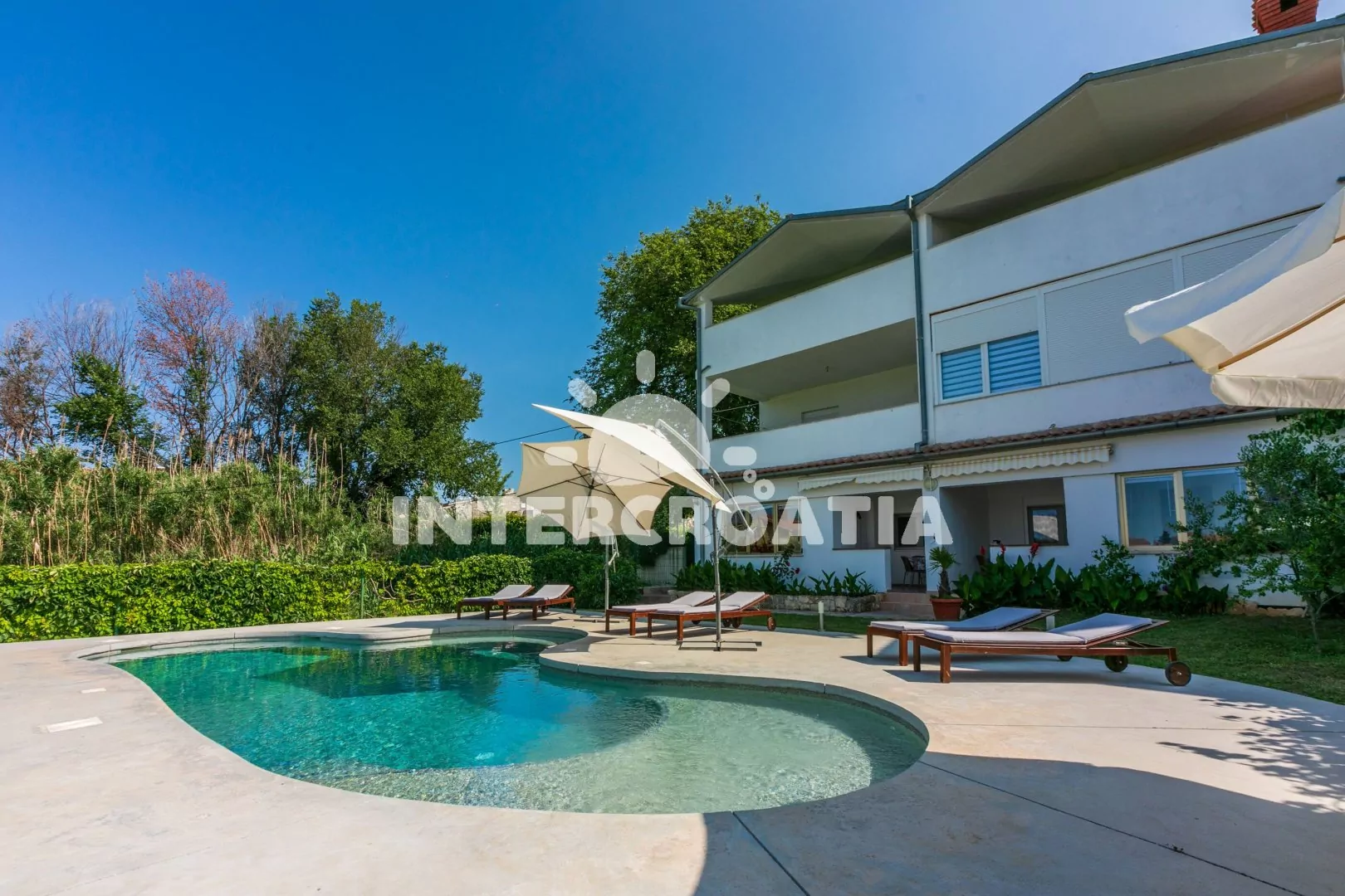Apartmánová vila s bazénem se nachází v blízkosti obce Fažana a Valbandon, 1,4 km pěší chůzí od oblázkové pláže a moře. Vila nabízí ubytování ve 4 klimatizovaných apartmánech s lodžiemi a venkovním posezením. K dispozici je zahrada s bazénem, lehátky, slunečníky a sprchou. Dále terasa se zahradní kuchyní, posezením a zděným grilem. Parkovací místa pro automobily přímo u vily.