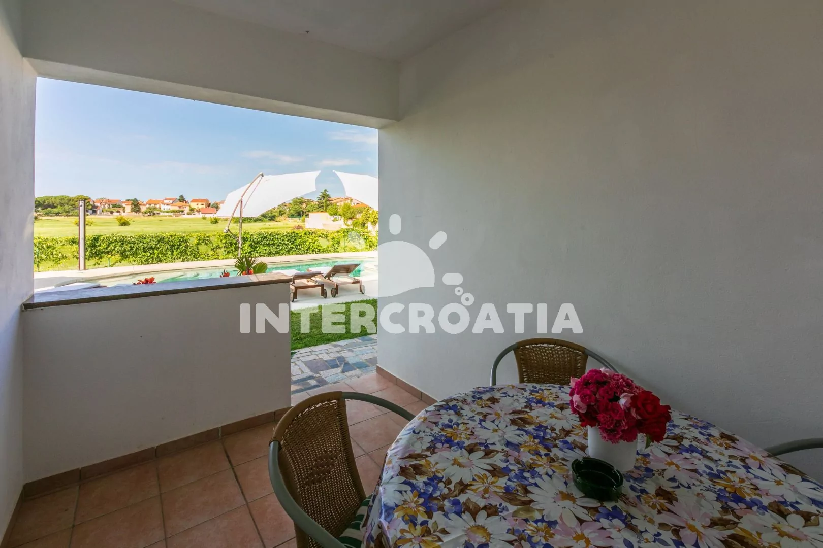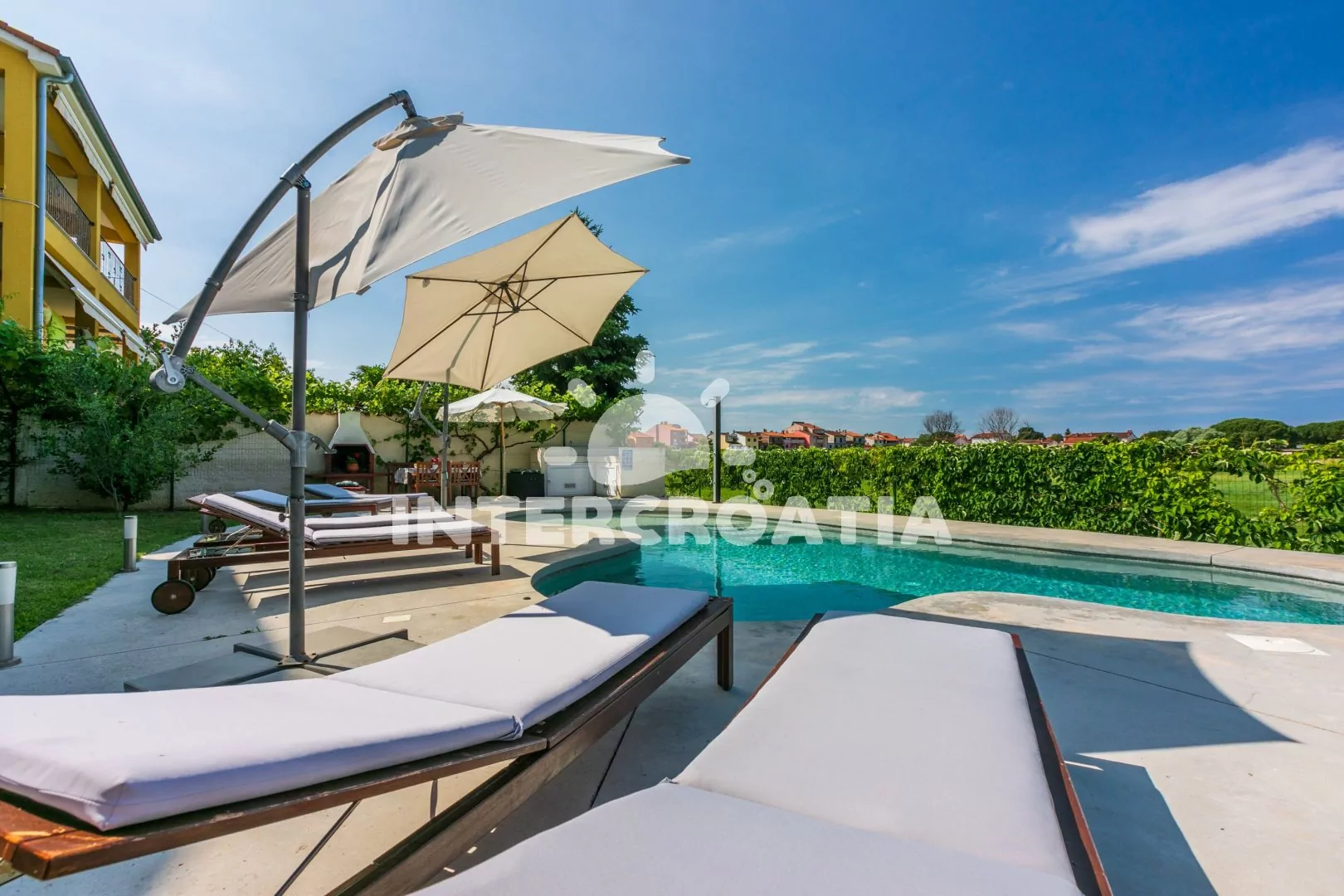 Apartmánová vila s bazénem se nachází v blízkosti obce Fažana a Valbandon, 1,4 km pěší chůzí od oblázkové pláže a moře. Vila nabízí ubytování ve 4 klimatizovaných apartmánech s lodžiemi a venkovním posezením. K dispozici je zahrada s bazénem, lehátky, slunečníky a sprchou. Dále terasa se zahradní kuchyní, posezením a zděným grilem. Parkovací místa pro automobily přímo u vily.
