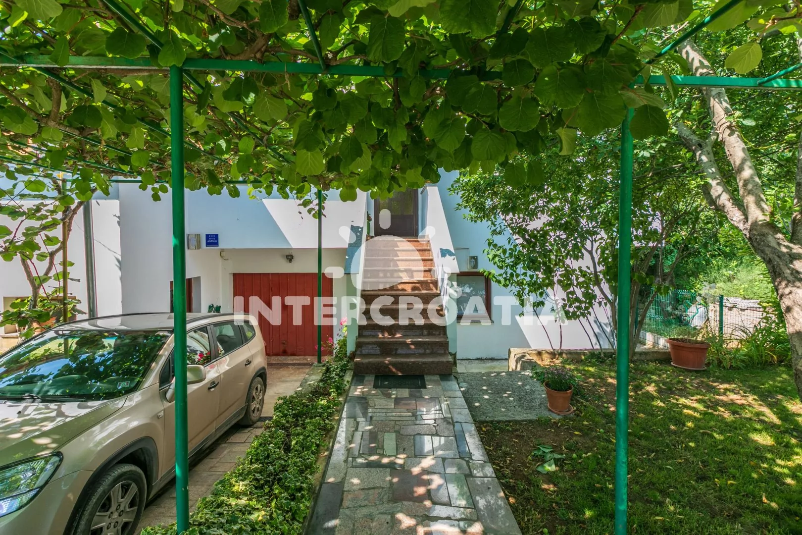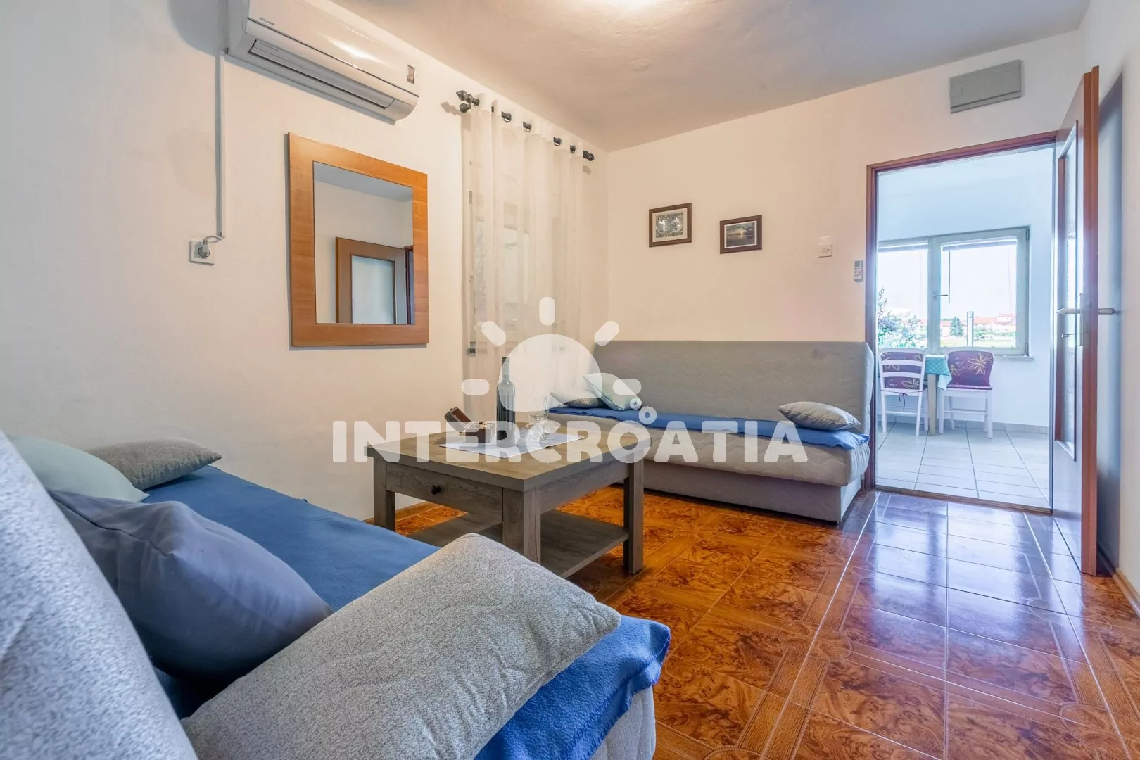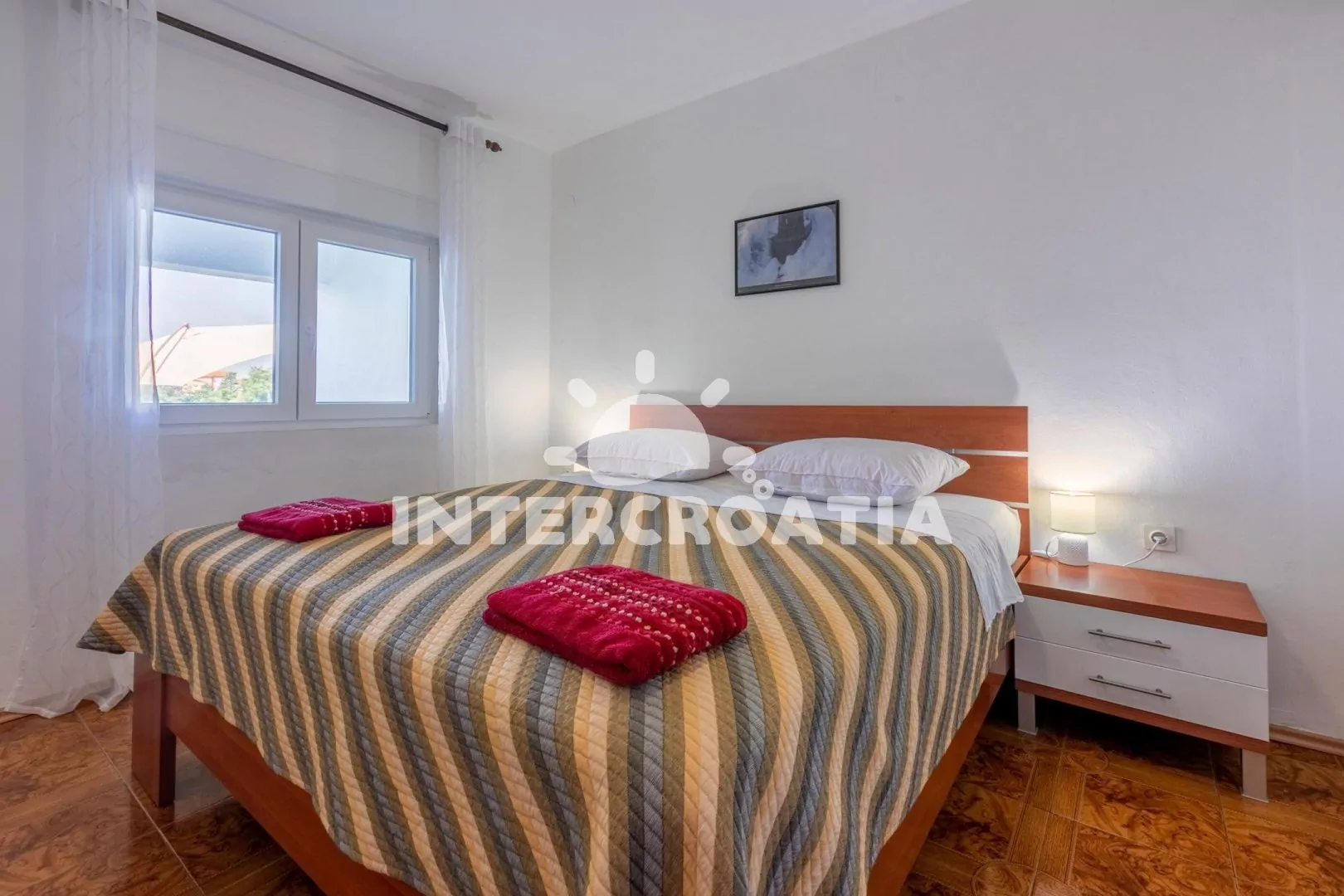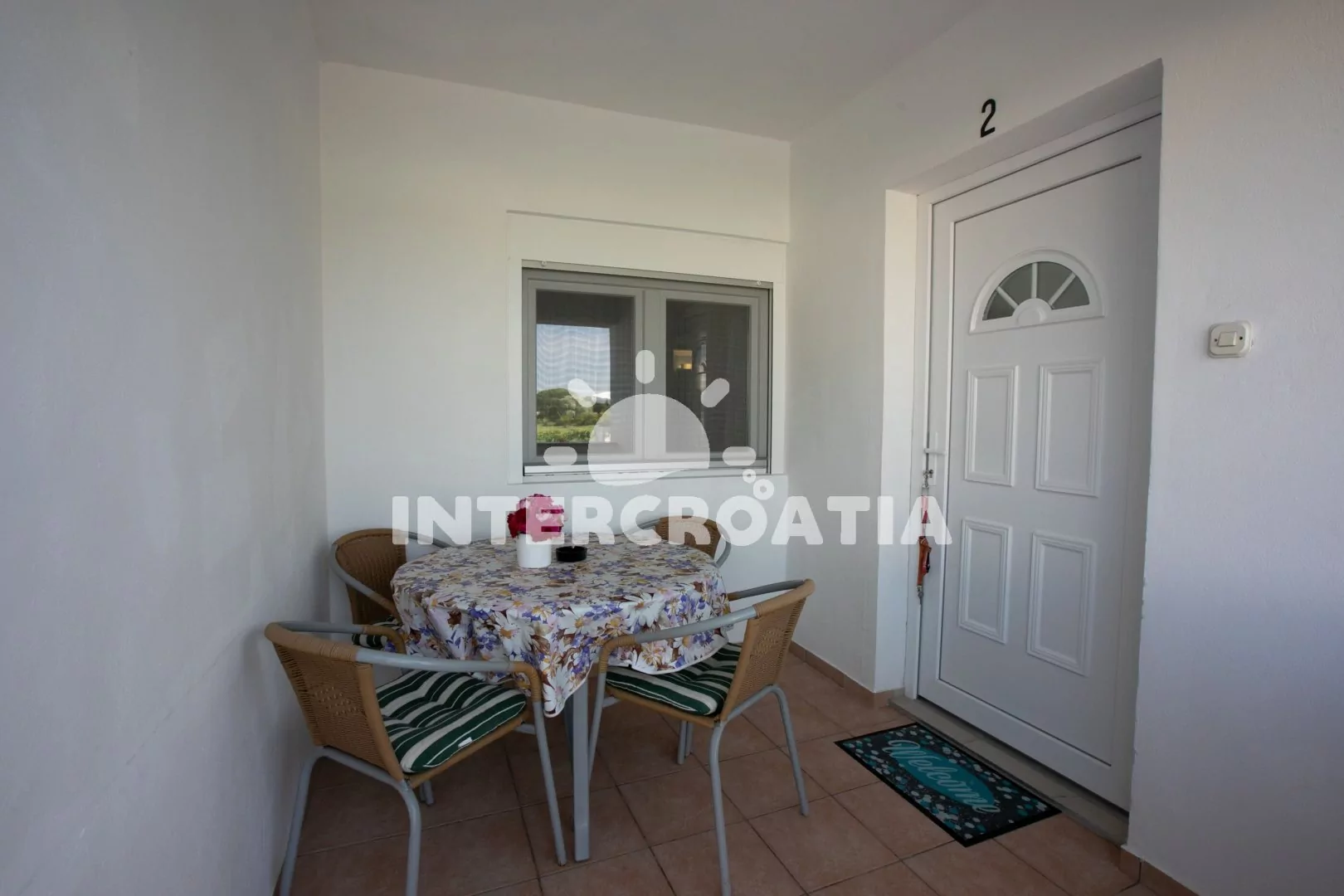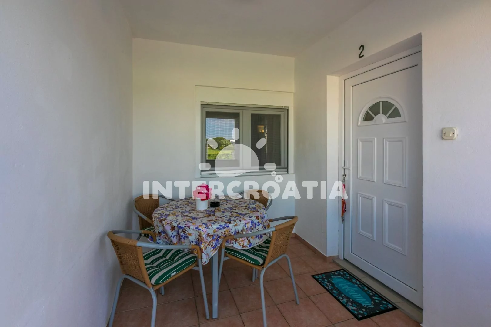 Apartmán (37 m2) s terasou a výhledem do zahrady se nachází v přízemí vily. Apartmán má 1 ložnice a je vhodný pro 2 až 4 osoby. Vstup: Kuchyň s jídelním stolem pro 4 osoby a kuchyňskou linkou. Kuchyňská linka je vybavena sklokeramickou varnou deskou, digestoří, mikrovlnnou troubou, rychlovarnou konvicí, kávovarem, toustovačem, nádobím a lednicí s mrazákem. Obývací pokoj s dvěma pohovkami (rozložitelná na extra lůžko pro 2 osoby), televizí se satelitním programem a klimatizací. Ložnice s jedním dvoulůžkem. Koupelna se sprchovým koutem, umyvadlem, fénem a wc. Hostům je k dispozici parkování u objektu zdarma.