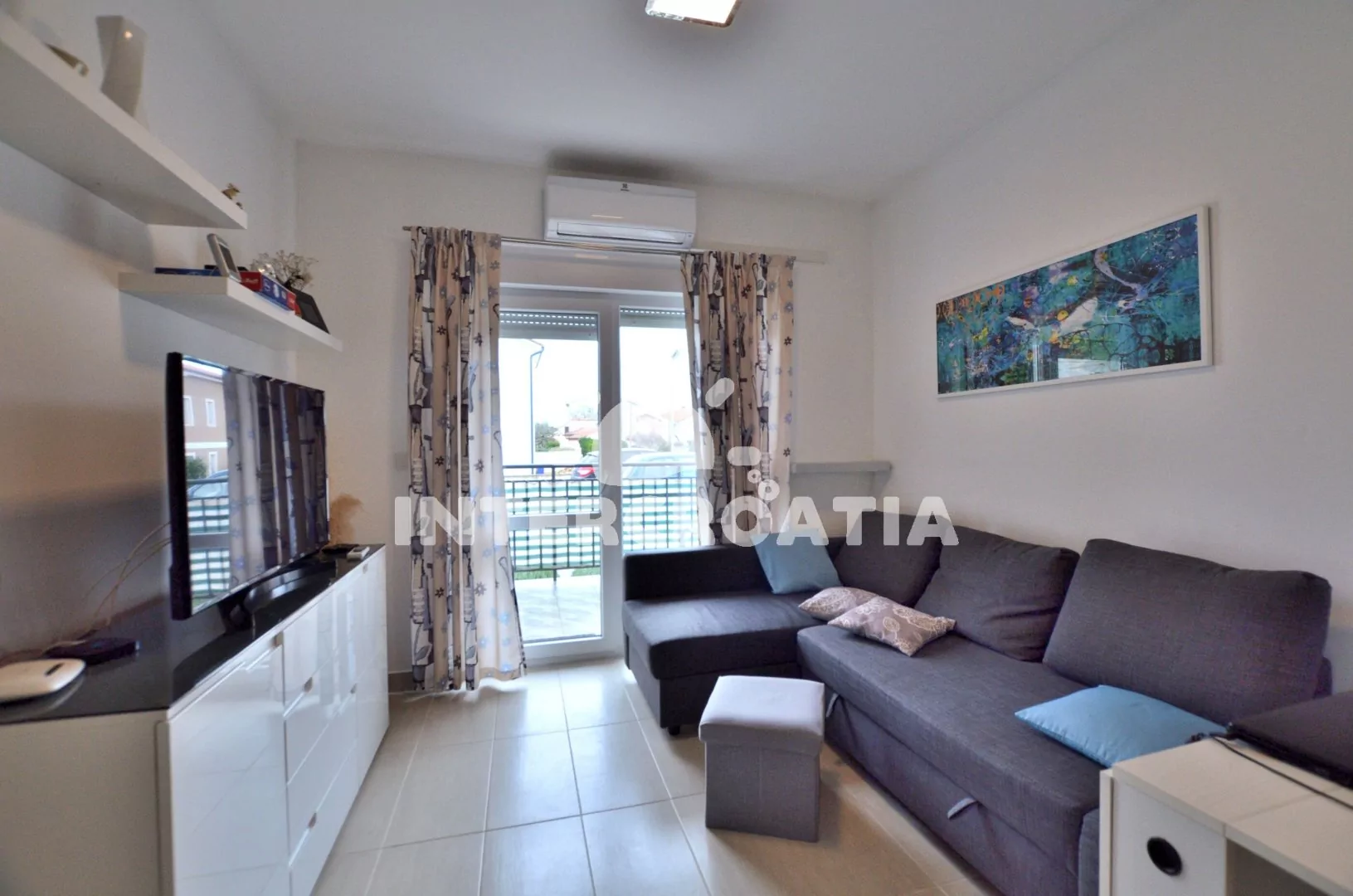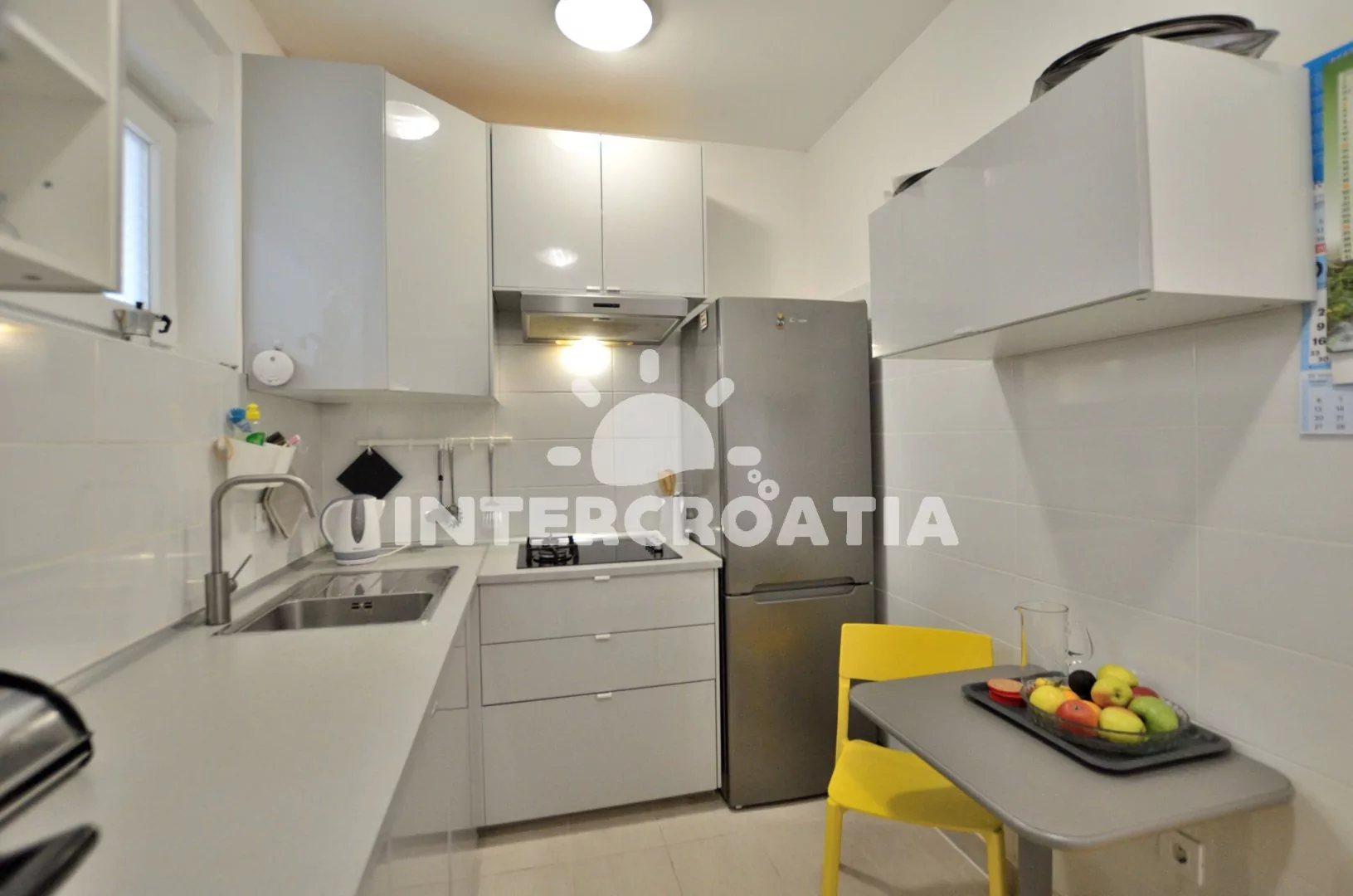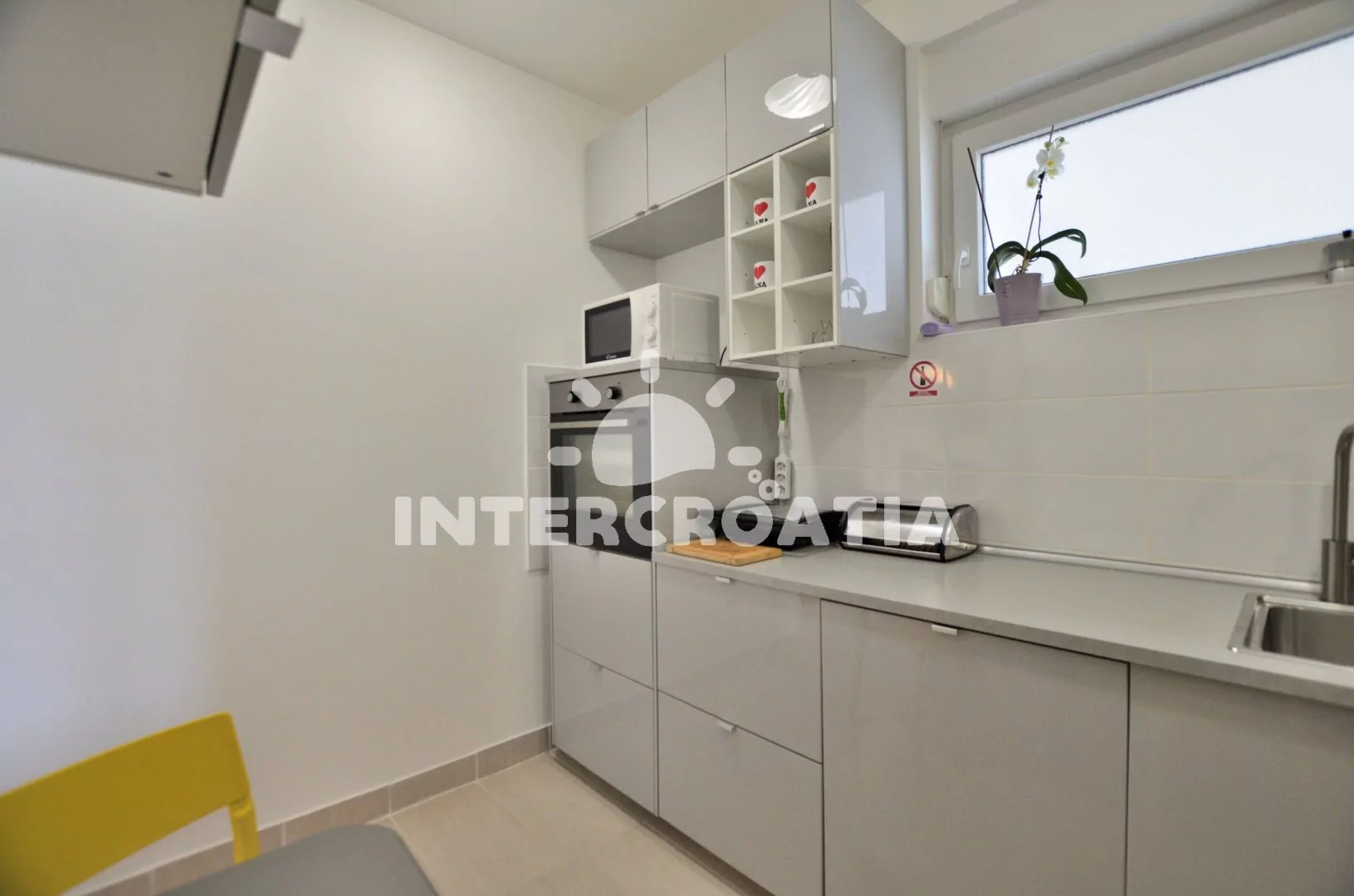 Apartmán (44 m2) s balkonem a venkovním posezením se nachází v přízemí domu. Apartmán má 1 ložnici a je vhodný pro 2 až 4 osoby. Obývací pokoj je spojený s kuchyní. Kuchyňská linka je vybavena varnou deskou, digestoří, vestavěnou troubou, myčkou na nádobí, rychlovarnou konvicí, mikrovlnnou troubou, kávovarem, toustovačem, nádobím a lednicí s mrazákem. Obývací pokoj s jídelním stolem, pohovkou (rozložitelná na extra lůžko pro 2 osoby), televizí se satelitním programem, klimatizací a vstupem na balkon. Ložnice s jedním dvoulůžkem. Koupelna se sprchovým koutem, umyvadlem, pračkou, fénem, bidetem a wc. Hostům je k dispozici parkování u objektu zdarma.