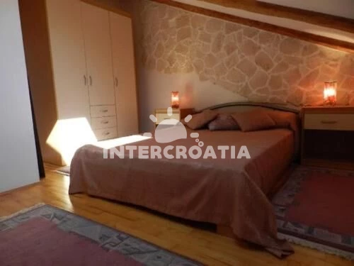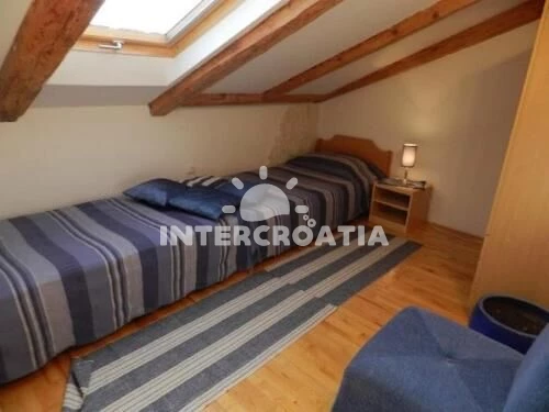 Apartmán (75 m2) s výhledem na moře. Nachází se v podkroví objektu. Apartmán má 2 ložnice a je vhodný pro až 5 osob. Kuchyňská linka je vybavena varnou deskou, troubou, rychlovarnou konvicí, nádobím, lednicí, mrazákem. V obývací místnosti je rozložitelná pohovka (extra lůžko pro 1 osobu). K dispozici televize. První ložnice s dvoulůžkem. Druhá ložnice se 2 jednolůžky. Koupelna se sprchovým koutem, umyvadlem, WC. Hostům je k dispozici parkování u objektu zdarma.