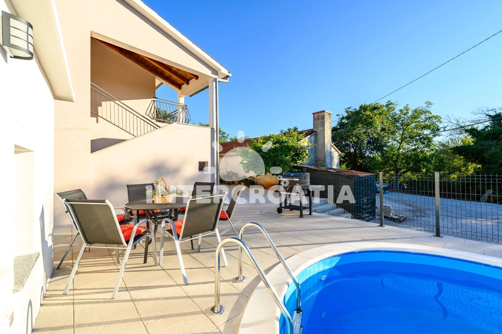 Vzdálenosti: Moře 9 km, pláž 13,2 km (skalnatá, oblázková, větší kamení a betonové desky), supermarket 1,1 km, centrum 8 km, veřejná doprava 8 km, lékárna 8 km, ambulance 8 km, směnárna 8 km, čerpací stanice 8 km, banka 8 km, pošta 8 km, bar 8 km, restaurace 8 km, trajekt (Brestova) 27,5 km, letiště (Pula) 45,2 km, park Plitvice 47,3 km,