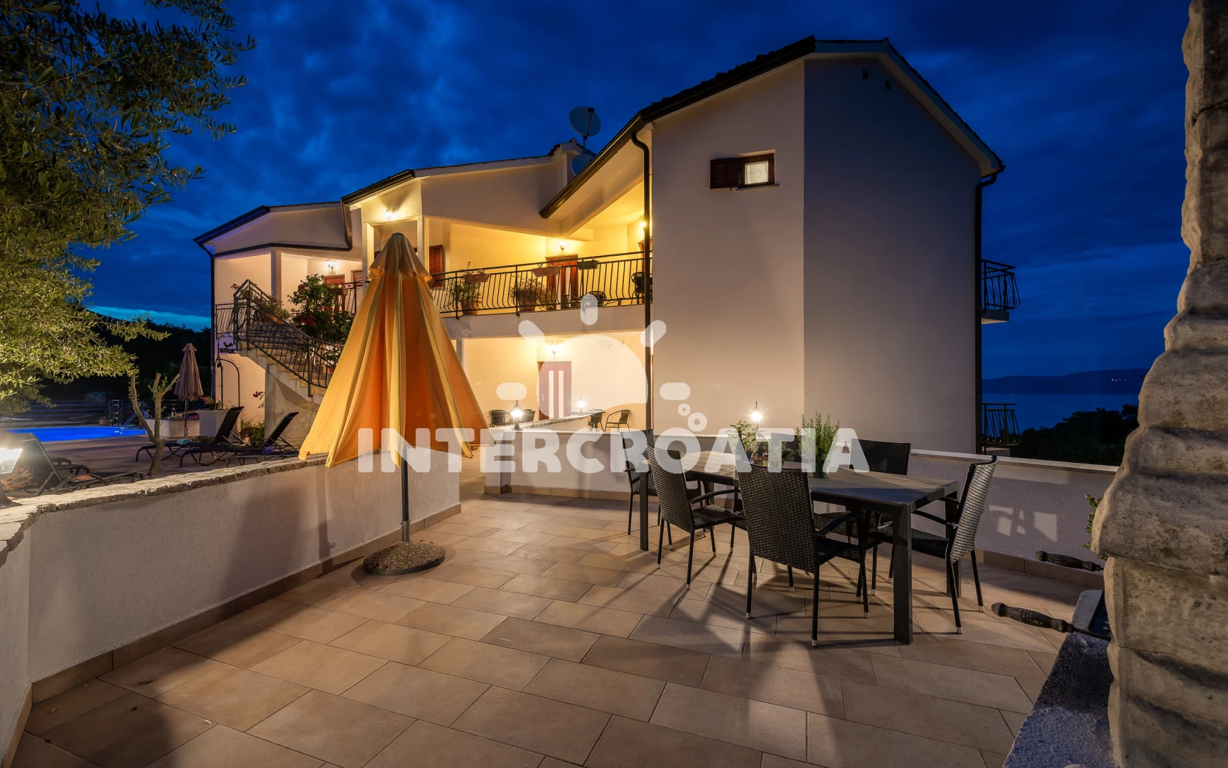 Apartmán se nachází 900 m od moře a pláže. Pláž je oblázková. Apartmán disponuje bazénem s lehátky pro ubytované hosty. K dispozici vířivka, sauna. U objektu je k dispozici společná zahrada s posezením a grilem.