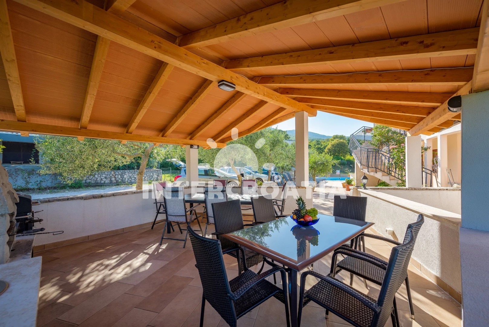 Vzdálenosti: kotviště pro čluny 0 m, Moře 500 m, pláž 900 m (oblázky), restaurace 50 m, supermarket 1 km, půjčovna motorových člunů 1,5 km, půjčovna kol 1,5 km, směnárna 1,5 km, tenisové kurty 1,5 km, bar 1,5 km, marina 2 km, potápění 2 km, diskotéka 10 km, muzeum 10 km, banka 10 km, pošta 10 km, čerpací stanice 10 km, ambulance 10 km, lékárna 10 km, veřejná doprava 10 km, centrum 11 km, trajekt (Brestova) 25 km, letiště (Pula) 42 km,