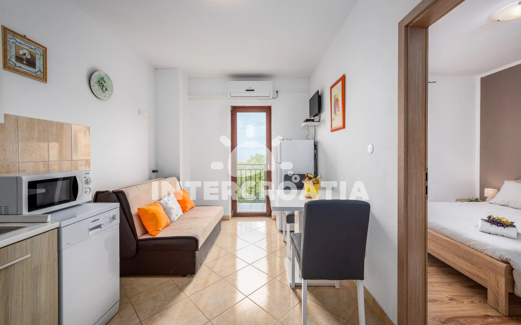 Apartmán (30 m2) s balkonem, a výhledem na moře. Nachází se v 1. patře objektu. Apartmán má 1 ložnici a je vhodný pro až 3 osoby. Kuchyňská linka je vybavena varnou deskou, troubou, kávovarem,…