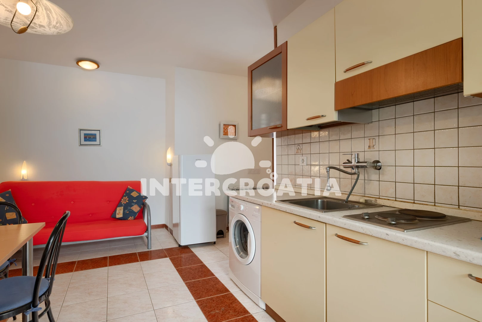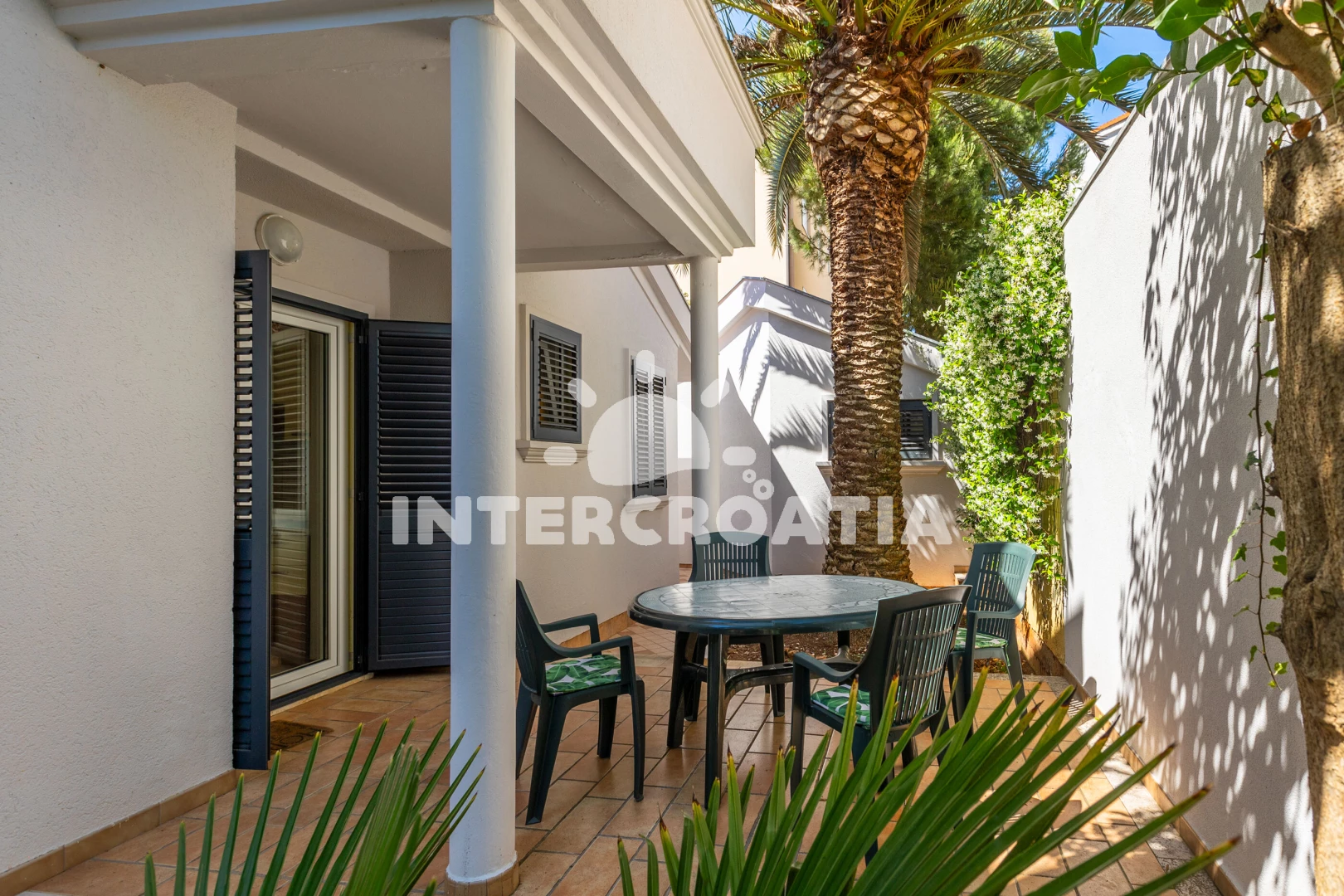 Apartmán (40 m2) s terasou. Nachází se v přízemí objektu. Apartmán má 1 ložnici a je vhodný pro až 3 osoby. Kuchyňská linka je vybavena kávovarem, nádobím, lednicí, mrazákem. V obývací místnosti je rozložitelná pohovka (extra lůžko pro 1 osobu). K dispozici televize se satelitním programem, žehlička. Ložnice s dvoulůžkem.