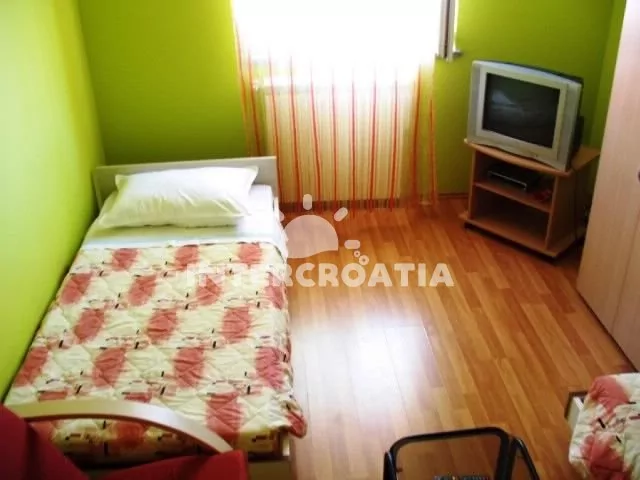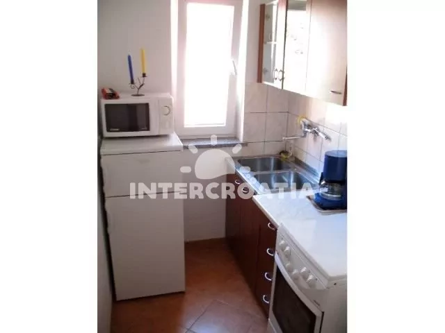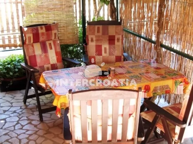 Apartmán v přízemí domu s terasou. Kuchyň je vybavena pracovní deskou, nádobím, sporákem, troubou, kávovarem, mikrovlnnou troubou, rychlovarnou konvicí, lednicí s mrazákem a jídelním stolem. První…