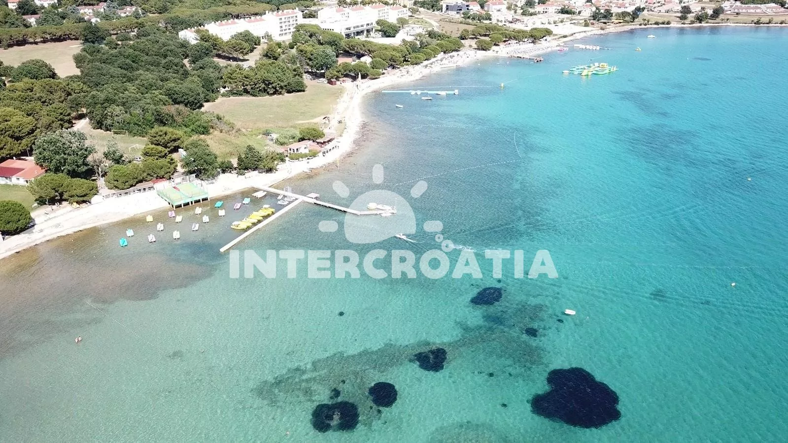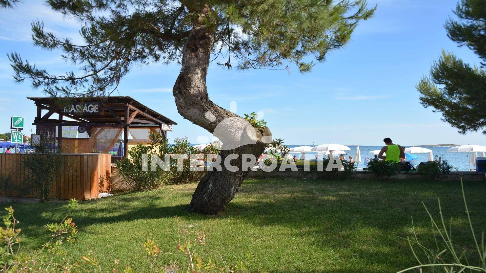 Vzdálenosti: Moře 900 m, pláž (písečná) 900 m, centrum 300 m, market 200 m, pošta 300 m, lékárna 400 m, nemocnice 400 m, restaurace 200 m, směnárna 200 m, banka 200 m, muzeum 300 m, potápěčský klub 800 m, kotviště pro čluny 800, půjčovna motorových člunů 800 m, půjčovna kol 800 m, tenisové kurty 800 m, mini golf 800 m, venkovní bazén 1,2 km, vnitřní bazén 1,2 km, diskotéka 800 m, bar 200 m, čerpací stanice 700 m, veřejná doprava 150 m, letiště (Pula) 15 km.