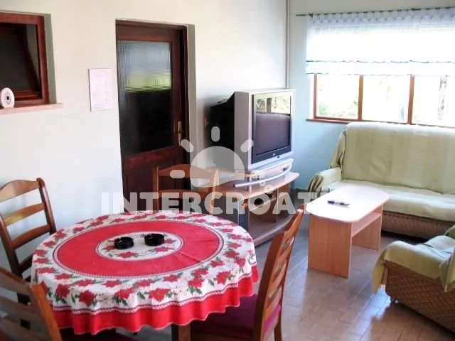 Apartmán v přízemí objektu až pro 4 osoby. Kuchyň je vybavena pracovní deskou, nádobím, sporákem, troubou, rychlovarnou konvicí, mikrovlnnou troubou, kávovarem a lednicí s mrazákem. Obývací pokoj s jídelním stolem, pohovkou a televizí. První ložnice s jedním manželským dvoulůžkem. Druhá ložnice částečně oddělena od kuchyně a je vybavena dvěma jednolůžky. Koupelna se sprchovým koutem, umyvadlem, fénem a wc. K dispozici: WiFi, klimatizace a terasa s posezením.