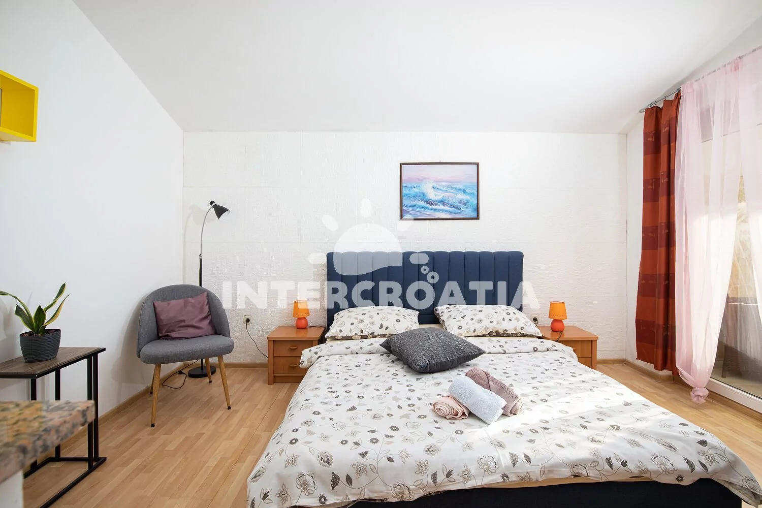 Moderně zařízený apartmán s lodžií a výhledem na moře, nachází se v druhém patře domu a je vhodný pro 4 až 5 osob. Obývací pokoj je spojený s kuchyní. Kuchyňská linka je vybavena sporákem,…
