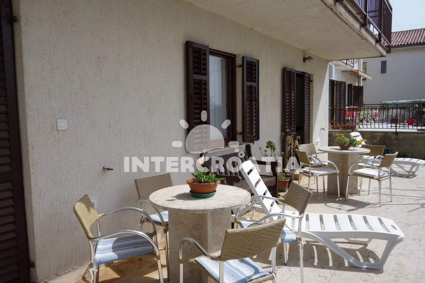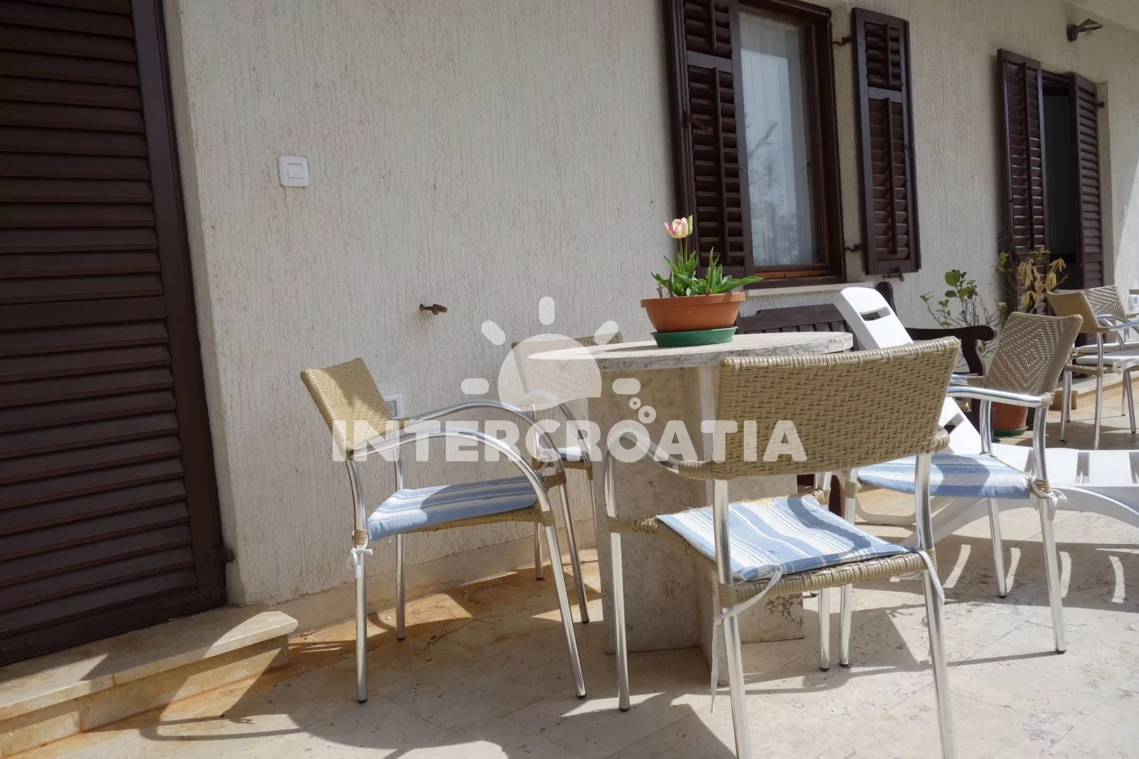 Samostatně stojící apartmánový domek se zahradou a terasou s venkovním posezením. Dům se nachází v klidné ulici města Medulin, parkování pro automobil u objektu.