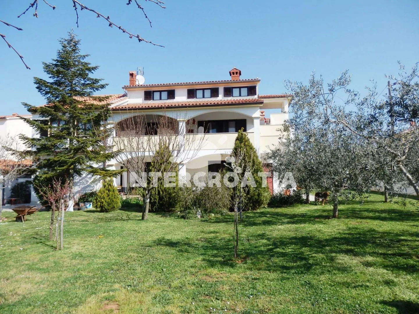 Apartmánová vila s velkou oplocenou zahradou a venkovním posezením na terase. Parkovací místa pro automobily u objektu.