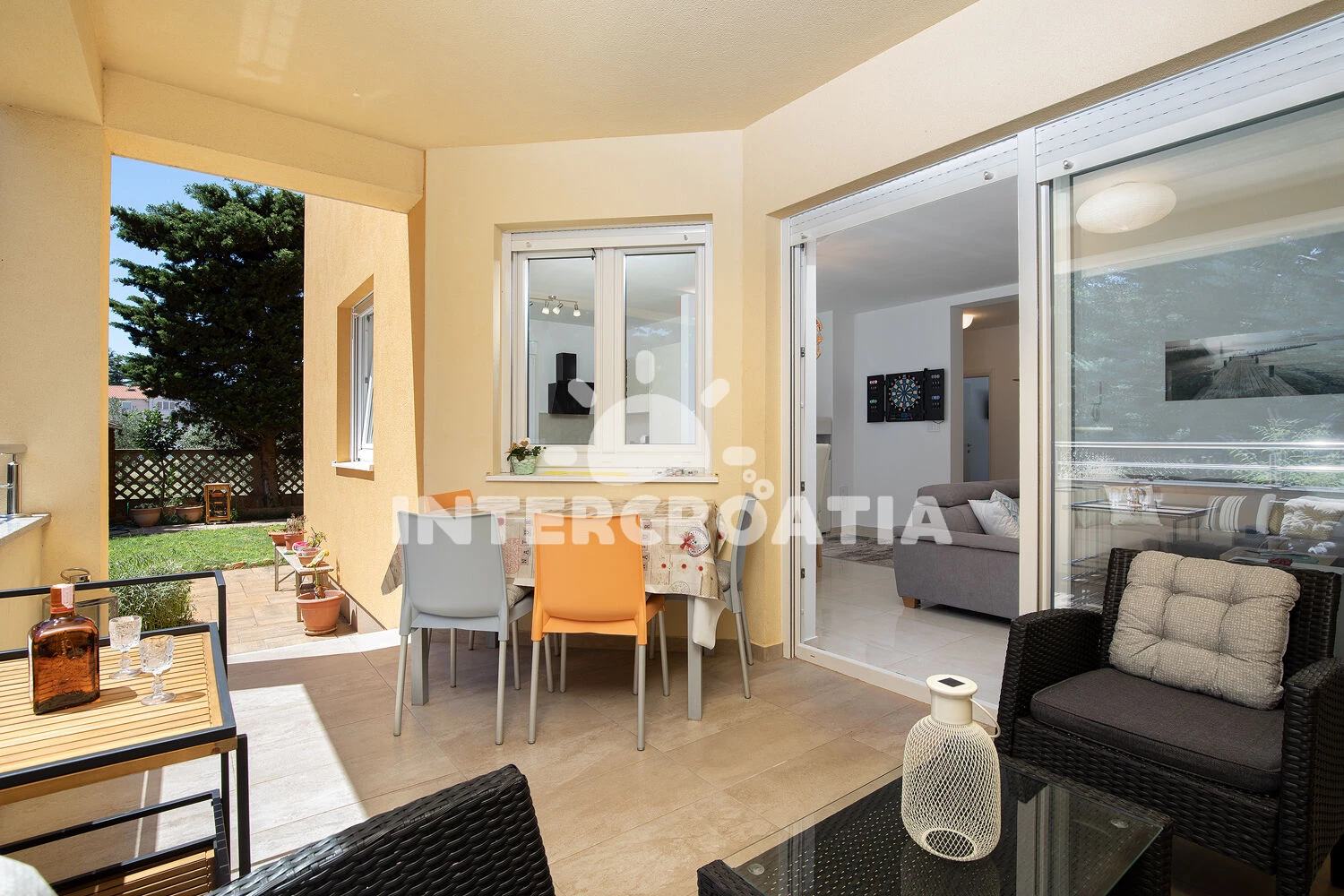 Apartmán se nachází 200 m od moře a pláže. Pláž je písčitá a oblázková. U objektu je k dispozici společná zahrada s posezením a grilem. Parkování je před domem.