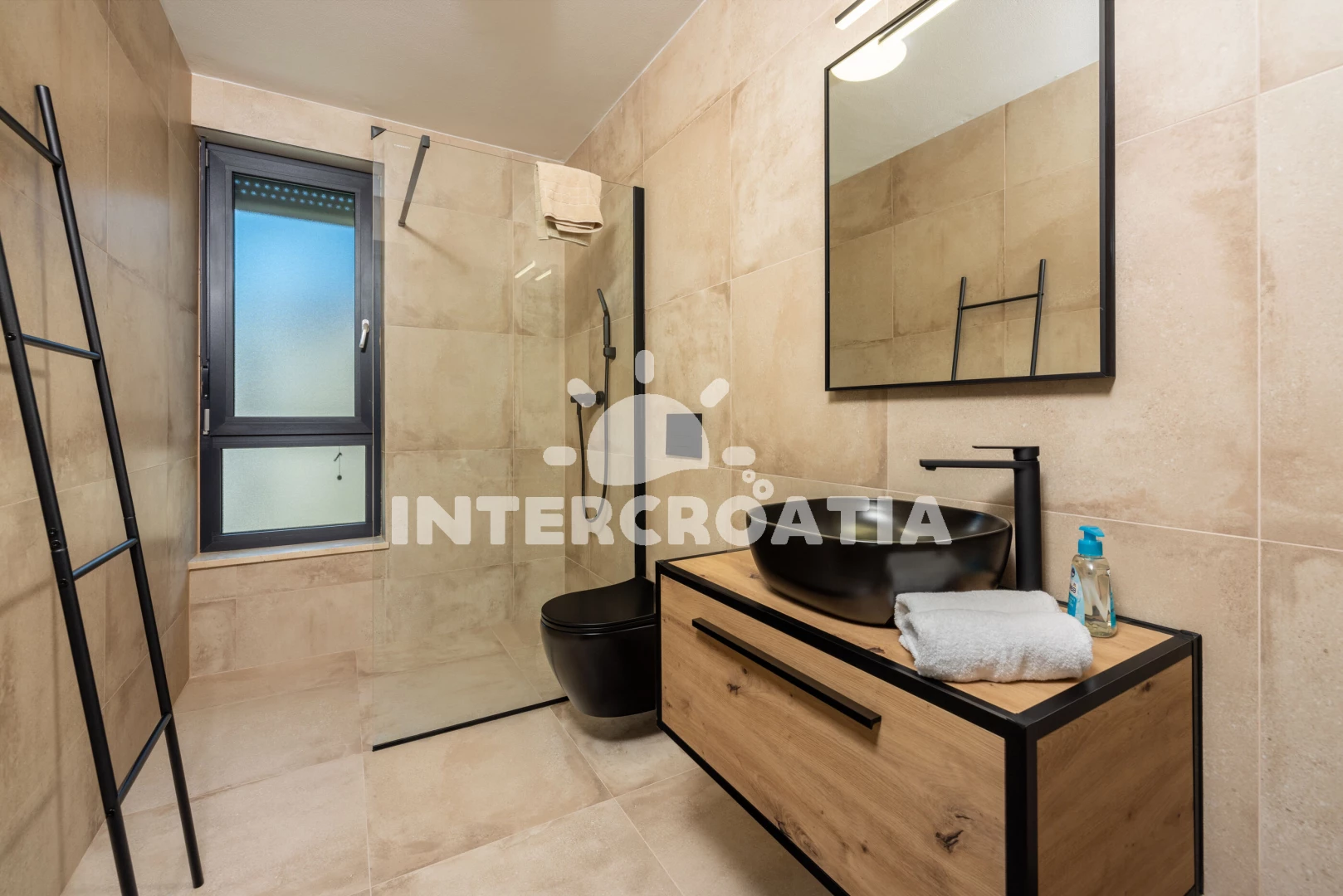 Apartmán se nachází 250 m od moře a pláže. Pláž je písčitá, skalnatá a větší kamení. Parkování je před domem.