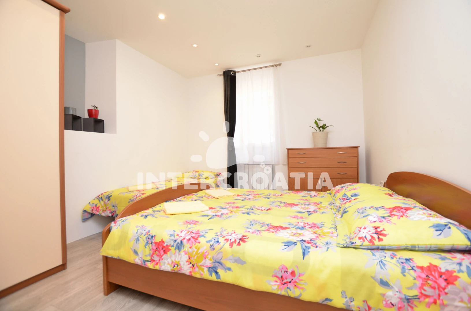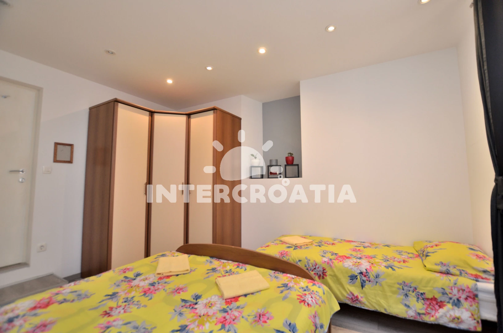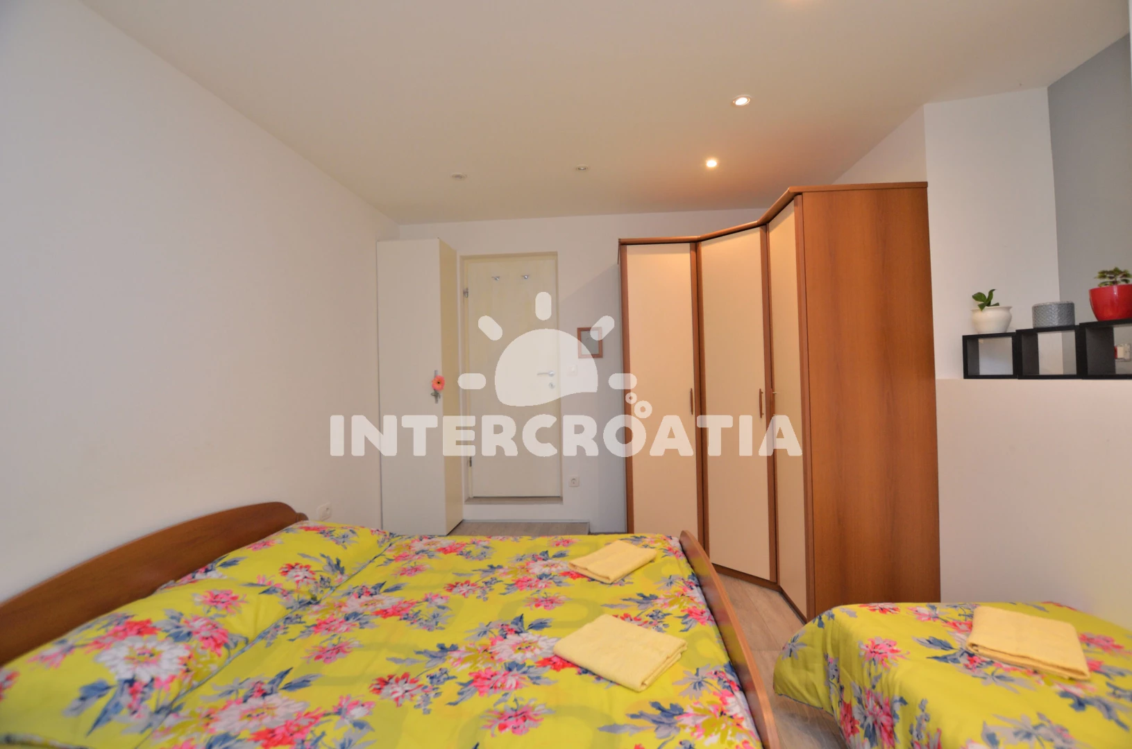 Apartmán se nachází 11000 m od moře a pláže. Pláž je skalnatá, oblázková, větší kamení a betonové desky. U objektu je k dispozici společná zahrada s posezením a grilem. Parkování je před domem.