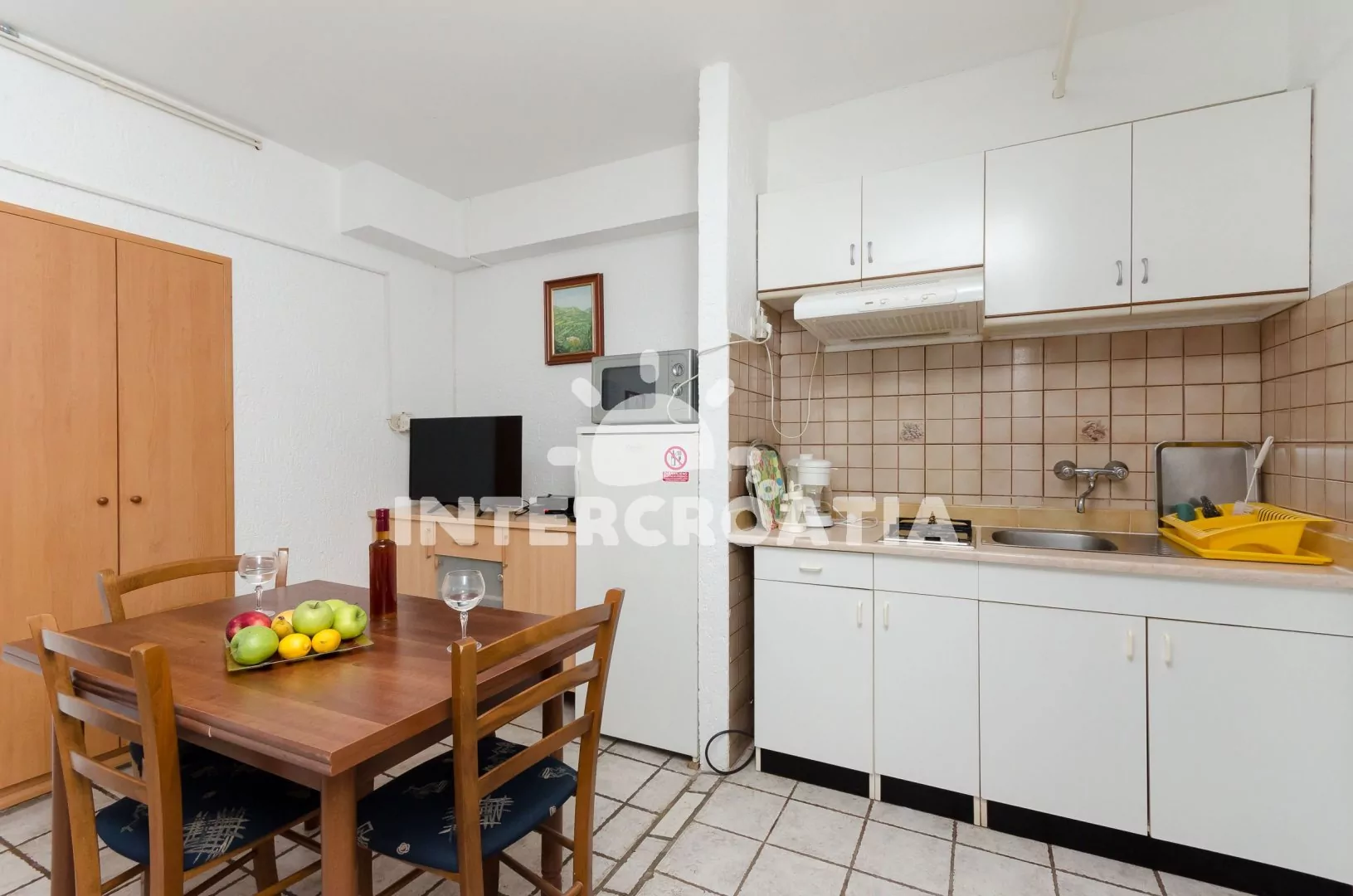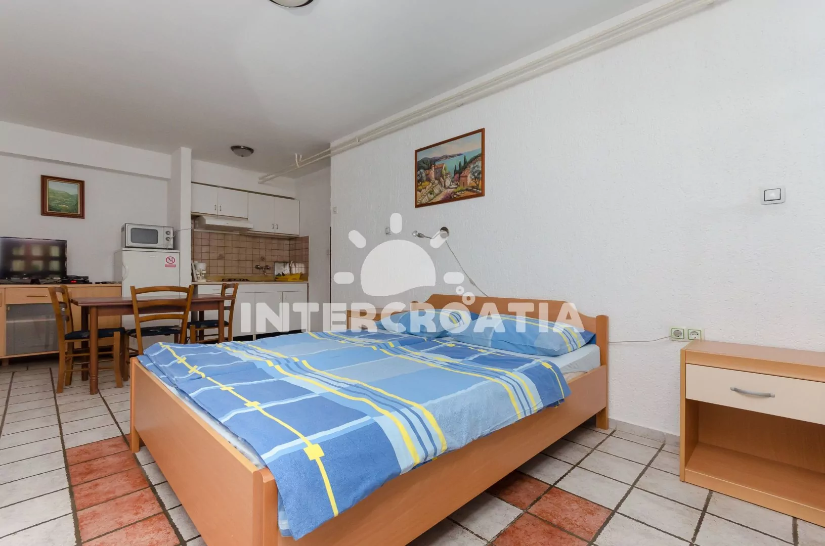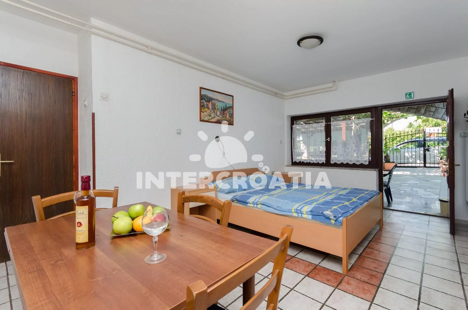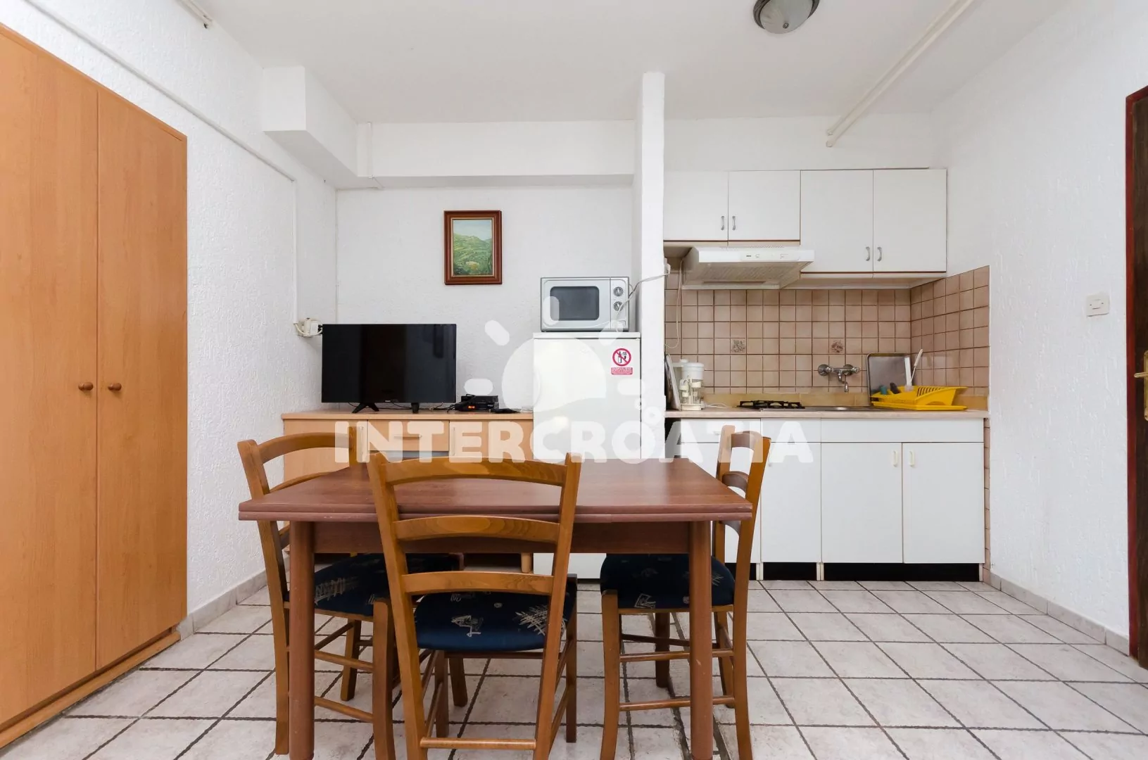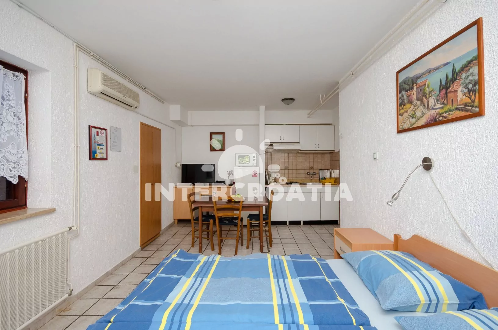 Apartmán typu studio pro 2 osoby. Nachází se v přízemí objektu, venkovní posezení na terase. Obývací místnost spojena s kuchyní. Kuchyňská linka s dvouplotýnkovým sporákem, digestoří, rychlovarnou konvicí, kávovarem, lednicí s mrazákem, nádobím a příbory. Obývací místnost s jídelním stolem pro 3 osoby, televizí se satelitním programem, klimatizací a jedním dvoulůžkem. Koupelna se sprchovým koutem, umyvadlem a wc. Hostům je k dispozici parkování u objektu zdarma.