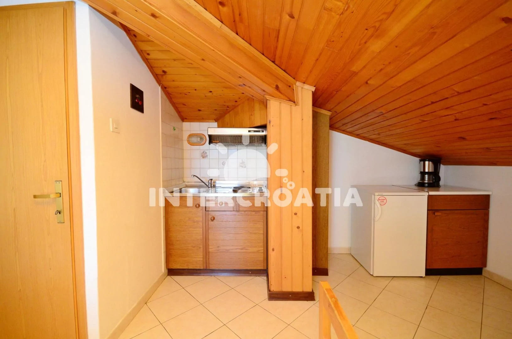 Apartmán (28 m2) typu studio s balkonem se nachází v podkroví domu a je vhodný pro 2 osoby. Obývací pokoj spojený s kuchyňkou. Kuchyňská linka s dvouplotýnkovým sporákem, lednicí s mrazákem,…