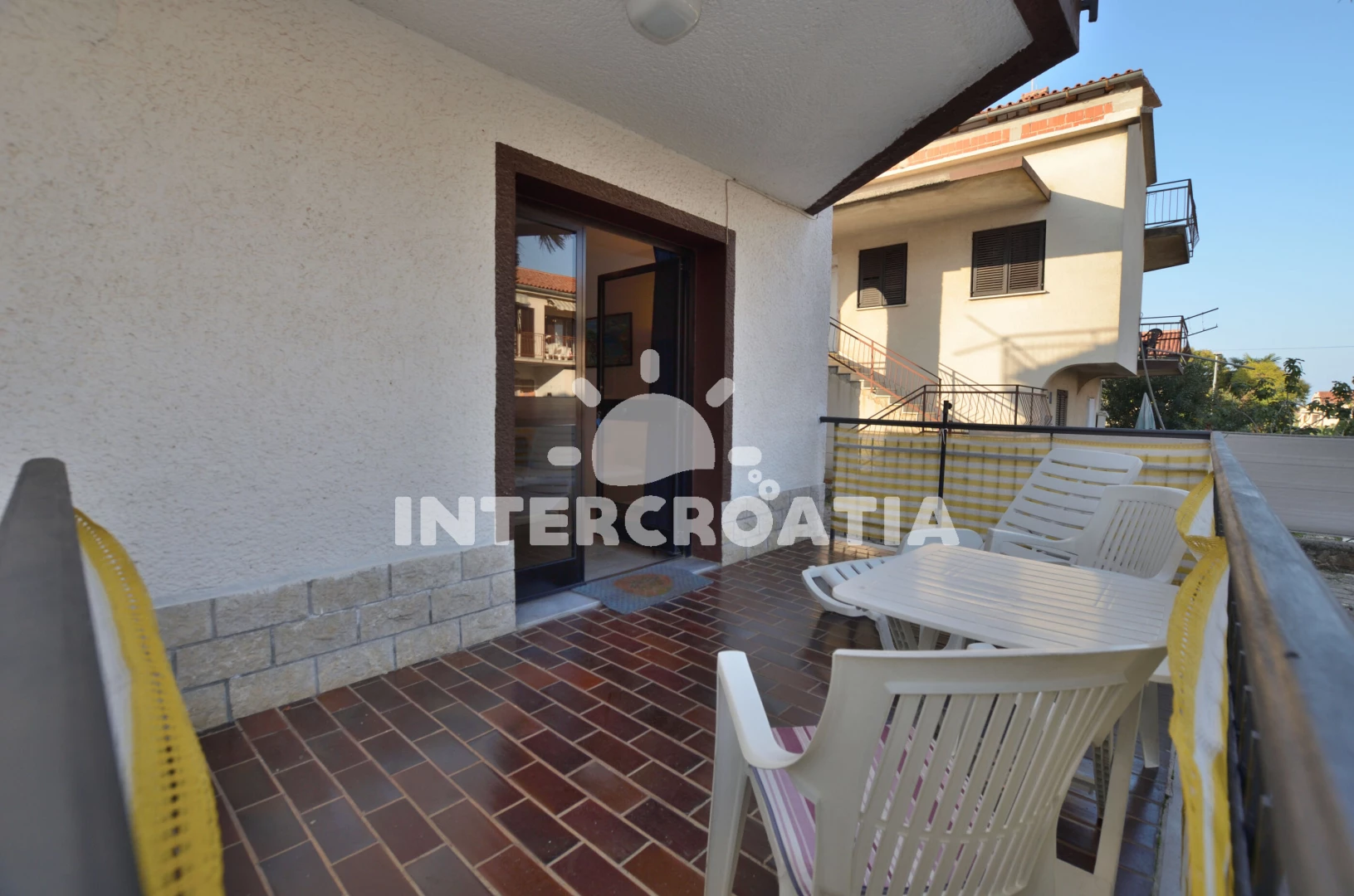 Apartmánový dům s venkovním posezením, v klidné části obce a s dobrou dostupností k moři. Parkováním přímo u domu.