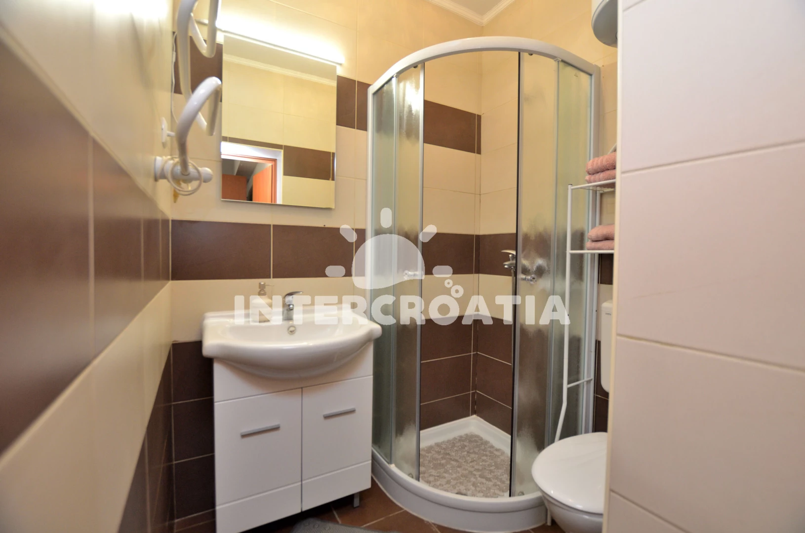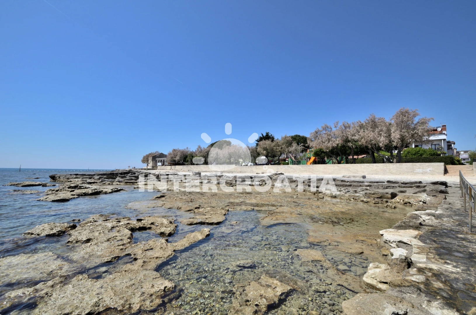 Vzdálenosti: Moře 50 m, pláž 10 m (betonové desky), bar 300 m, supermarket 300 m, restaurace 300 m, centrum 300 m, ambulance 300 m, lékárna 300 m, směnárna 300 m, tenisové kurty 300 m, banka 300 m, pošta 300 m, veřejná doprava 400 m, čerpací stanice 500 m, mini golf 500 m, trajekt (Rovinj) 57 km, park Plitvice 69 km, letiště (Pula) 75 km,