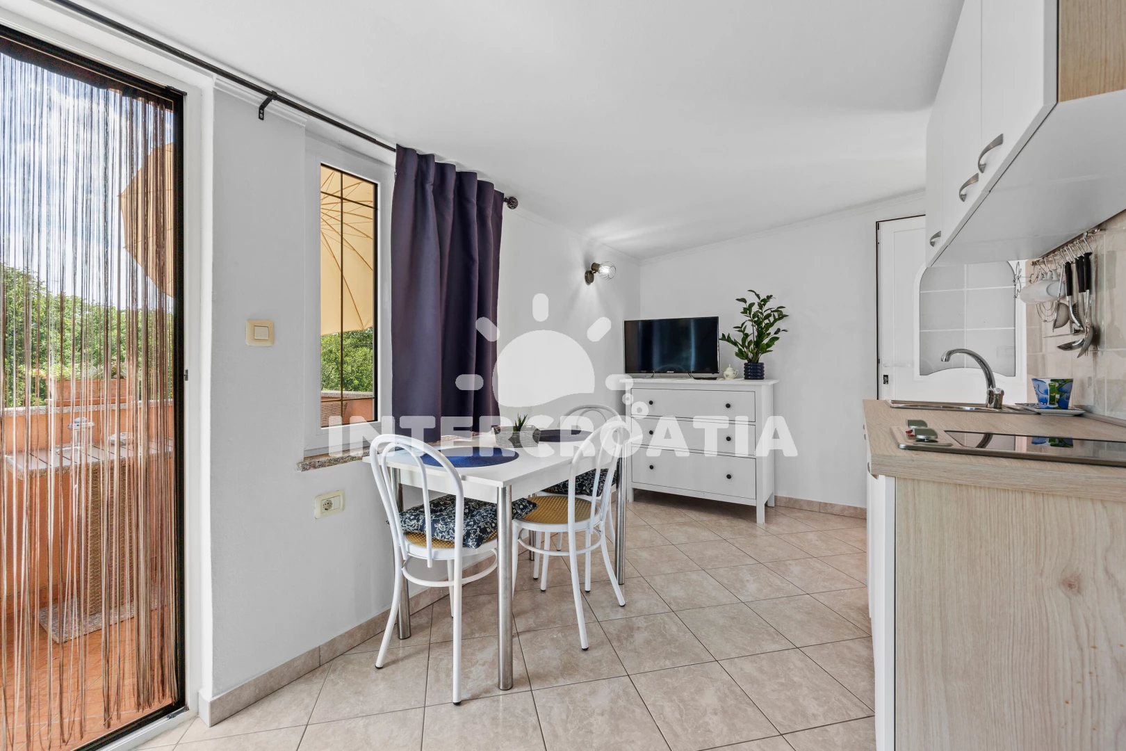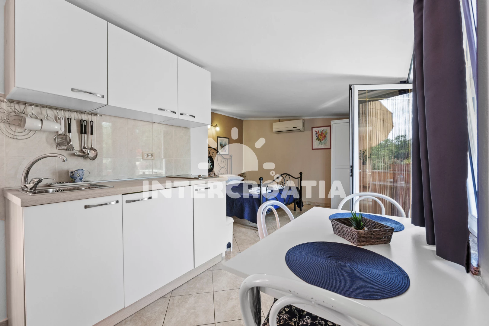 Apartmán (28 m2) s balkonem. Nachází se v 1. patře objektu. Kuchyňská linka je vybavena varnou deskou, kávovarem, toustovačem, rychlovarnou konvicí, nádobím, mini lednicí. K dispozici dvoulůžko, televize se satelitním programem, radio, žehlička. Koupelna se sprchovým koutem, umyvadlem, WC.